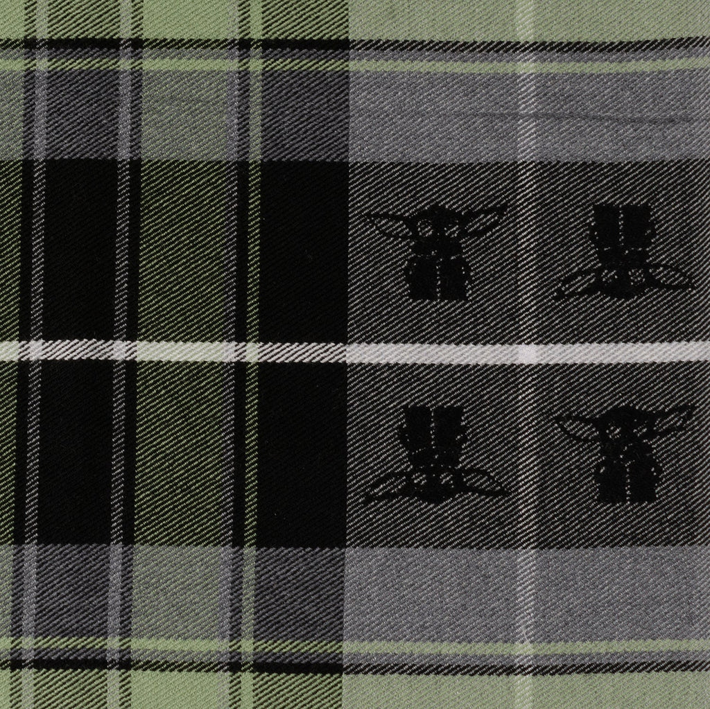 Perfect for a cool Fall or chilly Winter's night, this soft, our The Child Gray Scarf will keep you warm! Designed in a grey and sage green plaid pattern which features the galaxy's favorite child, Grogu, stitched in black. A new way to enjoy The Mandalorian and Star Wars universe. Experience the Way of the Mandalore with our expertly crafted 100% Merino Wool scarf. It's built to withstand the challenges of bounty hunting across the galaxy, infused with the honor of Mandalorian creed, and ready to accompany you on interstellar hunts. Officially licensed by LucasFilm LTD.