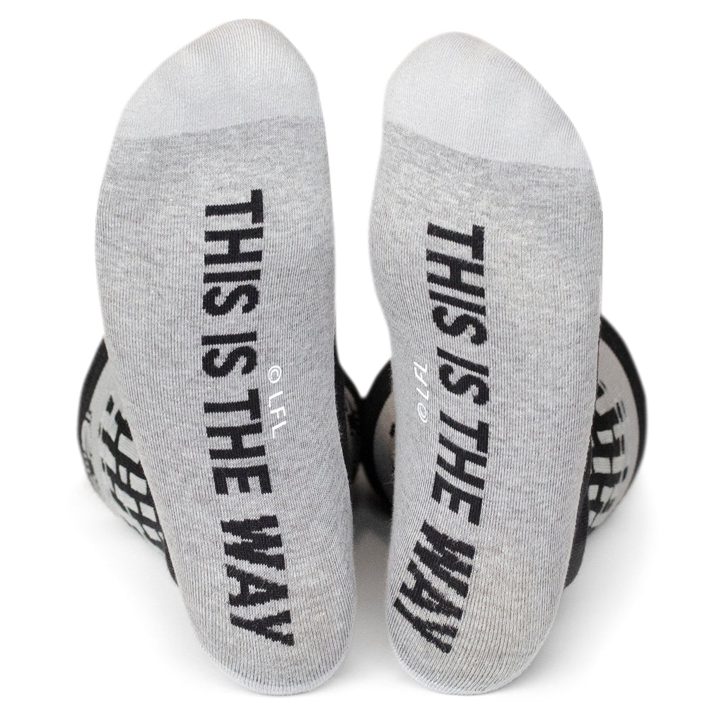 Get in on the secret with our Mandalorian Hidden Message and Helmet Gift Set. Including socks with hidden messages from Boba Fett, Mando, and the Mandalorian creed, as well as our Mandalorian Helmet Lapel Pin. This set is perfect for the Star Wars enthusiast who values both tradition and bold design and adds Mandalorian flair to any outfit. Officially licensed by LucasFilm LTD.