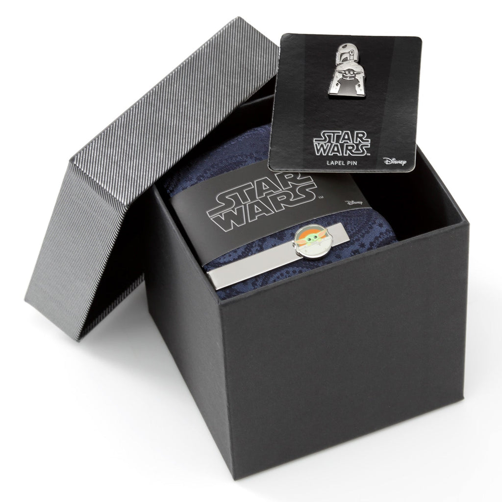 Star Wars Mandalorian and Grogu Navy Paisley Tie, Grogu Tie Bar, and Lapel Pin Gift Set