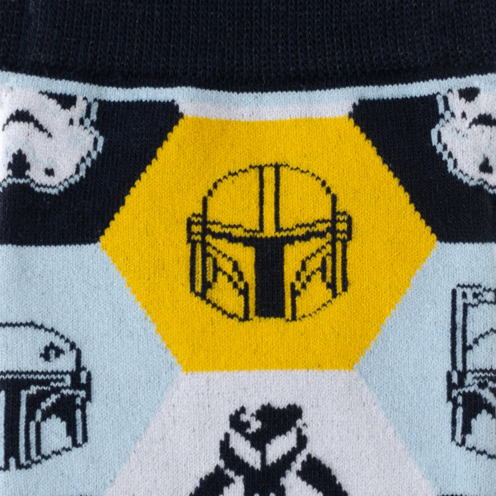 Celebrate the epic saga with the Star Wars Icons Multicolored Gift Set. This vibrant set includes a pair of multicolored socks featuring iconic Star Wars symbols and characters, along with our Mandalorian Helmet Lapel Pin. Perfect for the ultimate Star Wars enthusiast, these accessories add a touch of playful elegance to any outfit. Showcase your love for the galaxy far, far away with every step and detail.