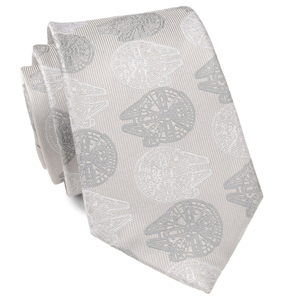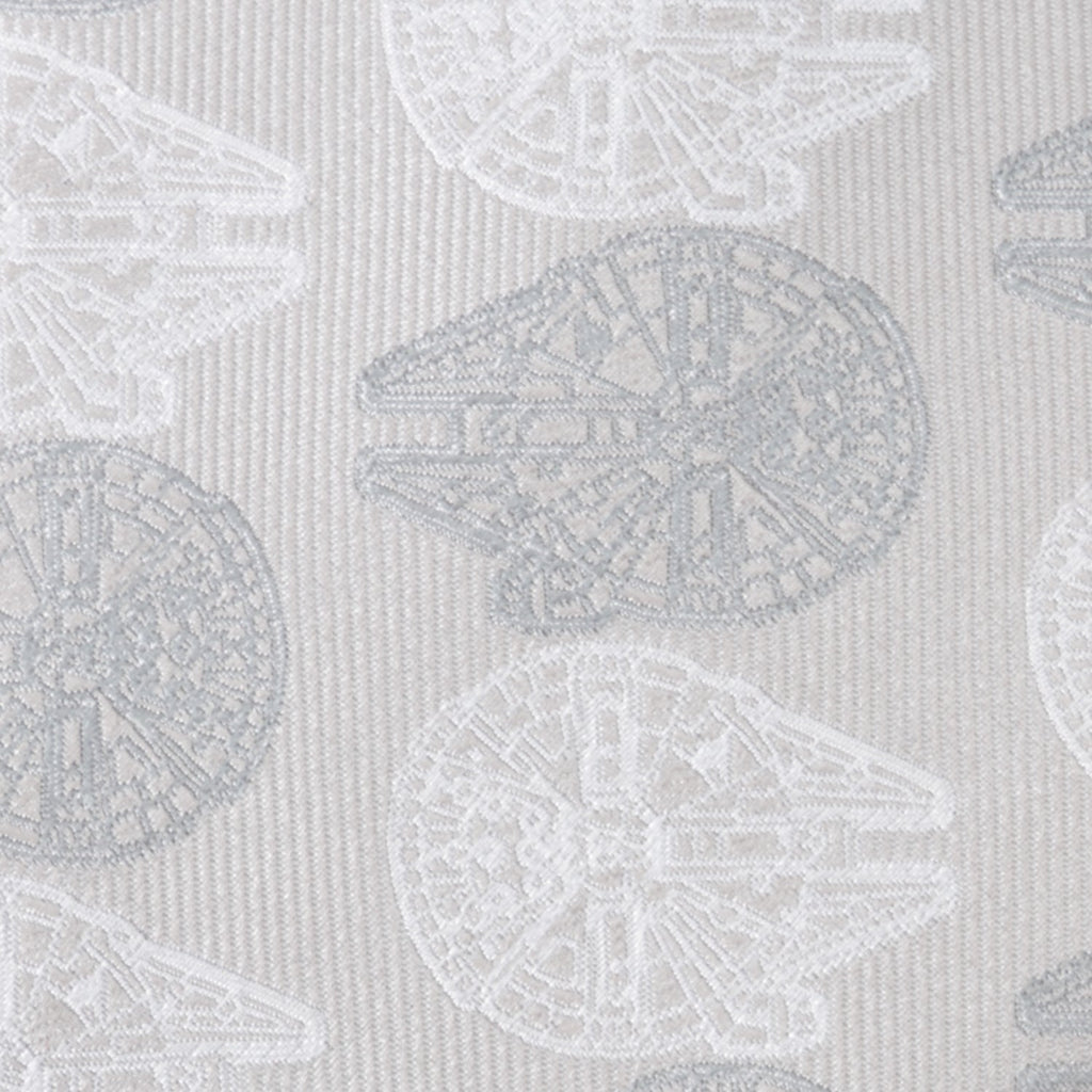 Stylish, silk, and professional with a Star Wars twist, this pewter gray tie will be the talk of the office. The Millennium Falcon is stitched in an alternating white and slate gray pattern, making for a modern yet subtle design. Our tie will maintain its shape and hold a perfect knot thanks to the durable yet soft 100% Silk. Pairs perfectly with any of our matching Millennium Falcon products. Officially licensed by LucasFilm LTD.