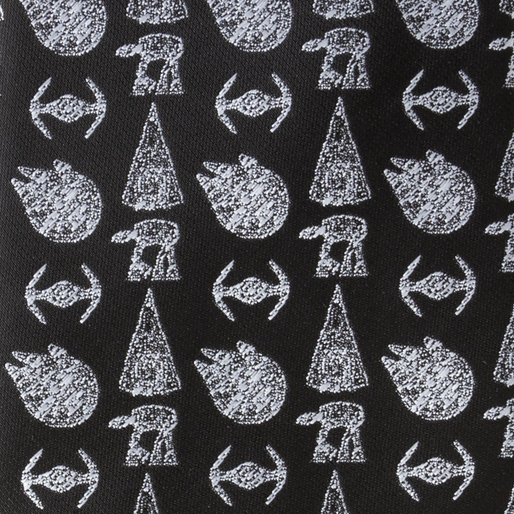 Sleek and clean-cut, our Star Wars Battle Black Men's Tie shows some of the most recognizable star wars battle ships from the Star Wars universe. Featuring the Millennium Falcon, AT-AT walkers, Imperial Star Destroyers, and the dark lord of the Sith's specialized tie fighter, you'll have it all with this modern black white neck tie. Experience the best of the Force and the Dark Side with our expertly crafted polyester tie. It is built to withstand the tests of galactic events, infused with the Jedi and Sith, and ready to accompany you on interstellar missions. Officially licensed by LucasFilm LTD.