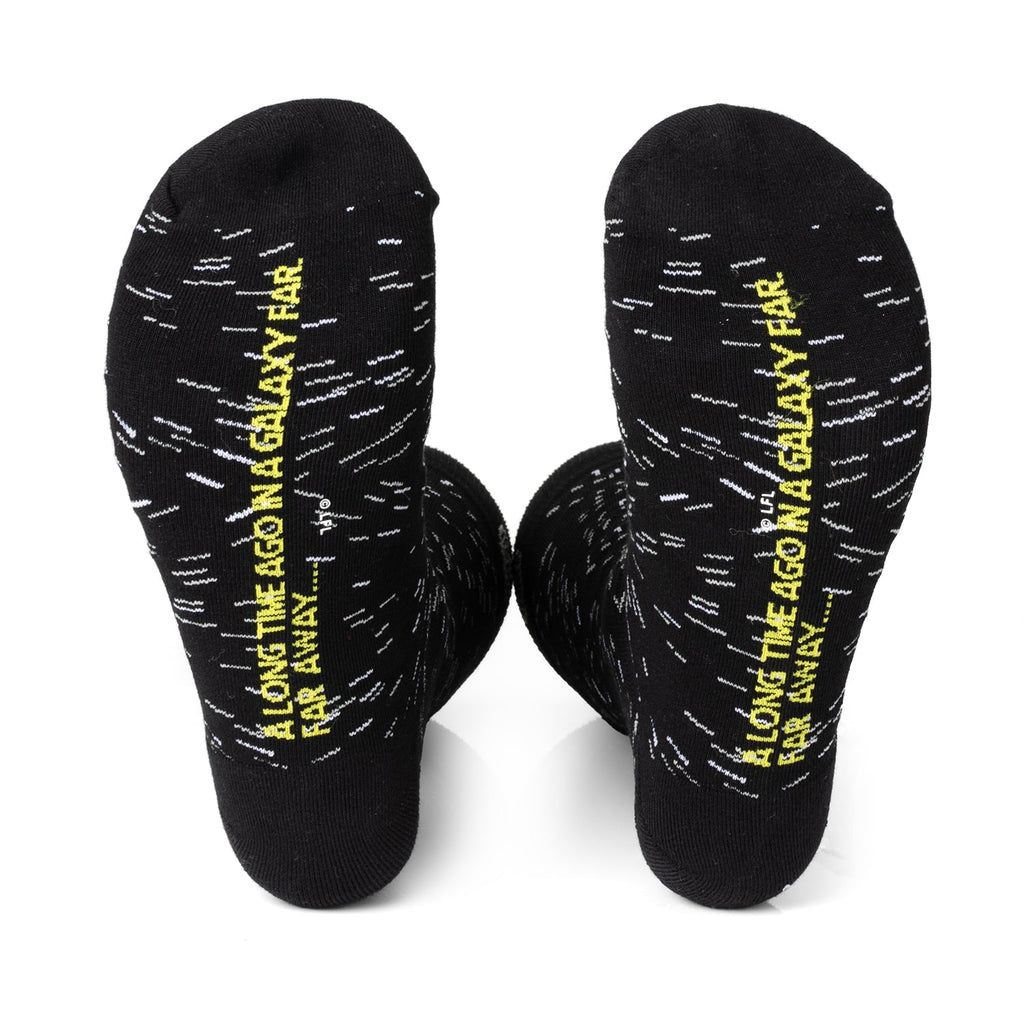 Take your style to a galaxy far, far away with our Star Wars Transport 3 Pack Sock & Lapel Pin Gift Set. This epic set includes our X-Wing Tie Fighter Battle Men's Socks, Hyperspace Hidden Message Black Sock, and Millennium Falcon Blueprint Black Men's Socks. Completing the set is our Star Wars Rebel Alliance Silver Lapel Pin, proudly displaying the classic Rebel insignia in a polished silver finish. Perfect for Star Wars fans and accessory enthusiasts, this gift set is the ultimate way to bring intergalactic adventure to your wardrobe!