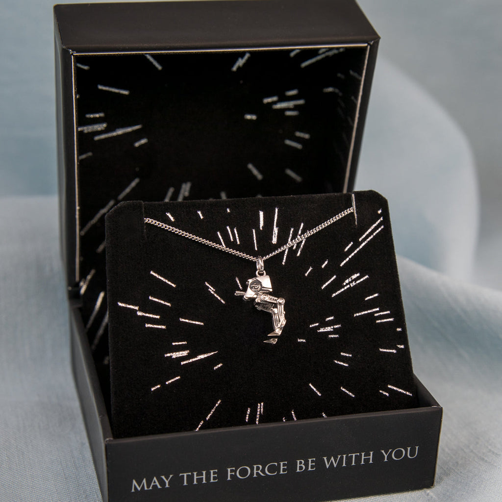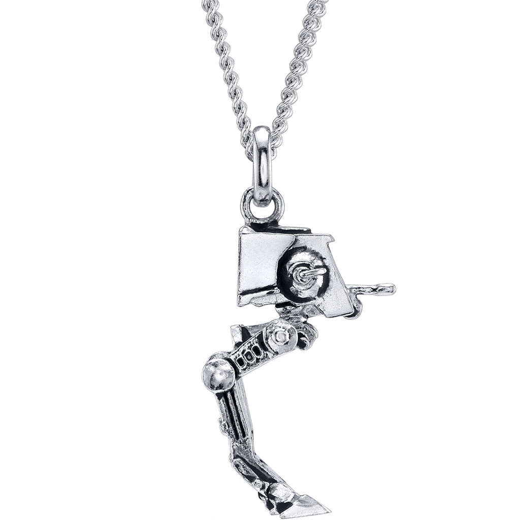 The agile and versatile AT-ST™ Walker, affectionately known as the "Chicken Walker," is a vital asset to the Galactic Empire's ground forces. This AT-ST Necklace is delightfully handcrafted in antiqued sterling silver, making it a must-have for the discerning Star Wars fan with impeccable taste in Imperial engineering. The intricately sculpted, three-dimensional pendant showcases its signature dual-leg design, complete with articulated legs and ankles for dramatic mid-stride posing. The pendant hangs from a long and layerable adjustable sterling silver curb chain with a signature tag.