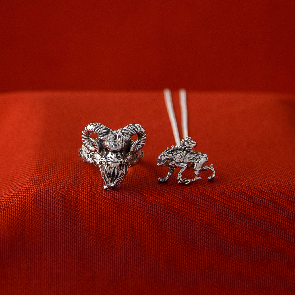 BANTHAS are large, furry mammals that travel in herds through TATOOINE’S desert wastes. They serve as mounts for TUSKEN RAIDERS, and the two share a close, almost mystical bond. Handcrafted in sterling silver and antiqued for contrast, the unisex Bantha Ring depicts the head of this gentle creature. Intricately sculpted, hair texture continues all along the band in addition to raised lettering: “TATOOINE SANDS.” A chunky three-dimensional statement ring, the domed head is hollowed beneath to alleviate weight for comfortable for everyday wear.