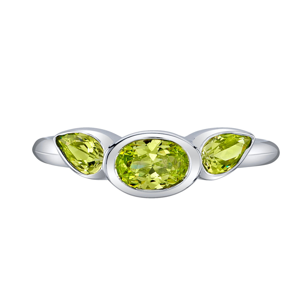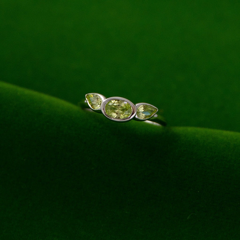 Handcrafted in solid sterling silver, the GROGU Crystal Ring may be the most adorable in the galaxy! Bezel set in polished silver, a brightly faceted oval cubic zirconia crystal sits between two outward facing teardrop crystals, representing THE CHILD’s iconic visage. Brilliant in its simplicity, the cheerful green crystals feature a cutout back so that light can shine through for maximum sparkle. Complete with comfortably rounded slender ring band, this charming piece comes in an array of sizes.