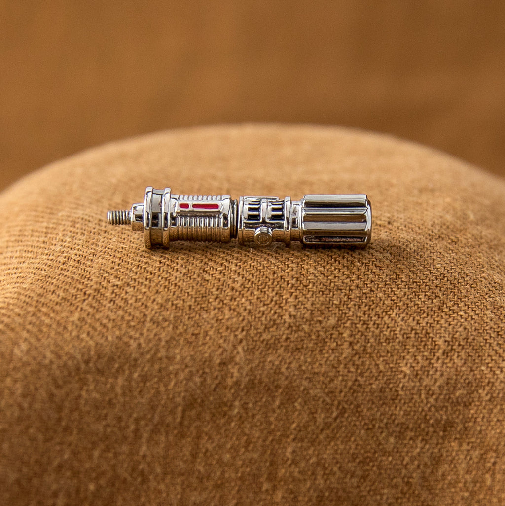 Threaded screws secure each hilt component in place for simple and secure assembly, while also ensuring your LIGHTSABER™ necklace is a complete build: only a sleeve can fit into an emitter, a switch into a sleeve, and so on.
