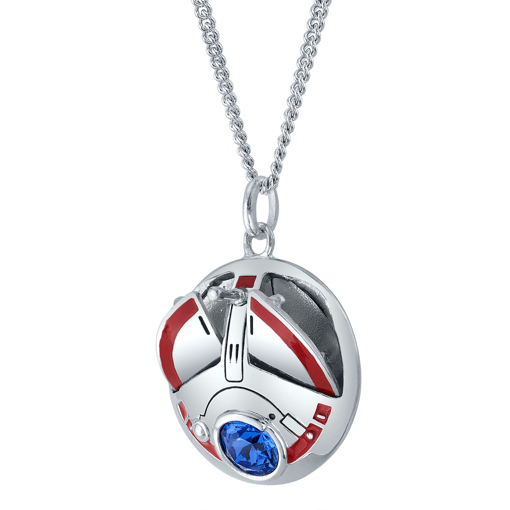 Handcrafted in solid sterling silver, LOLA is the beloved L0-LA59 DROID companion of young LEIA ORGANA. Ingeniously constructed, the disk-shaped droid features two hinged wing panels that can flap independently up and down! A large faceted round sapphire blue cubic zirconia crystal is offset by deep red hand painted enamel markings. Complete with perky antennae and etched details on every surface, the charismatic pendant hangs from a unisex adjustable sterling silver curb chain.