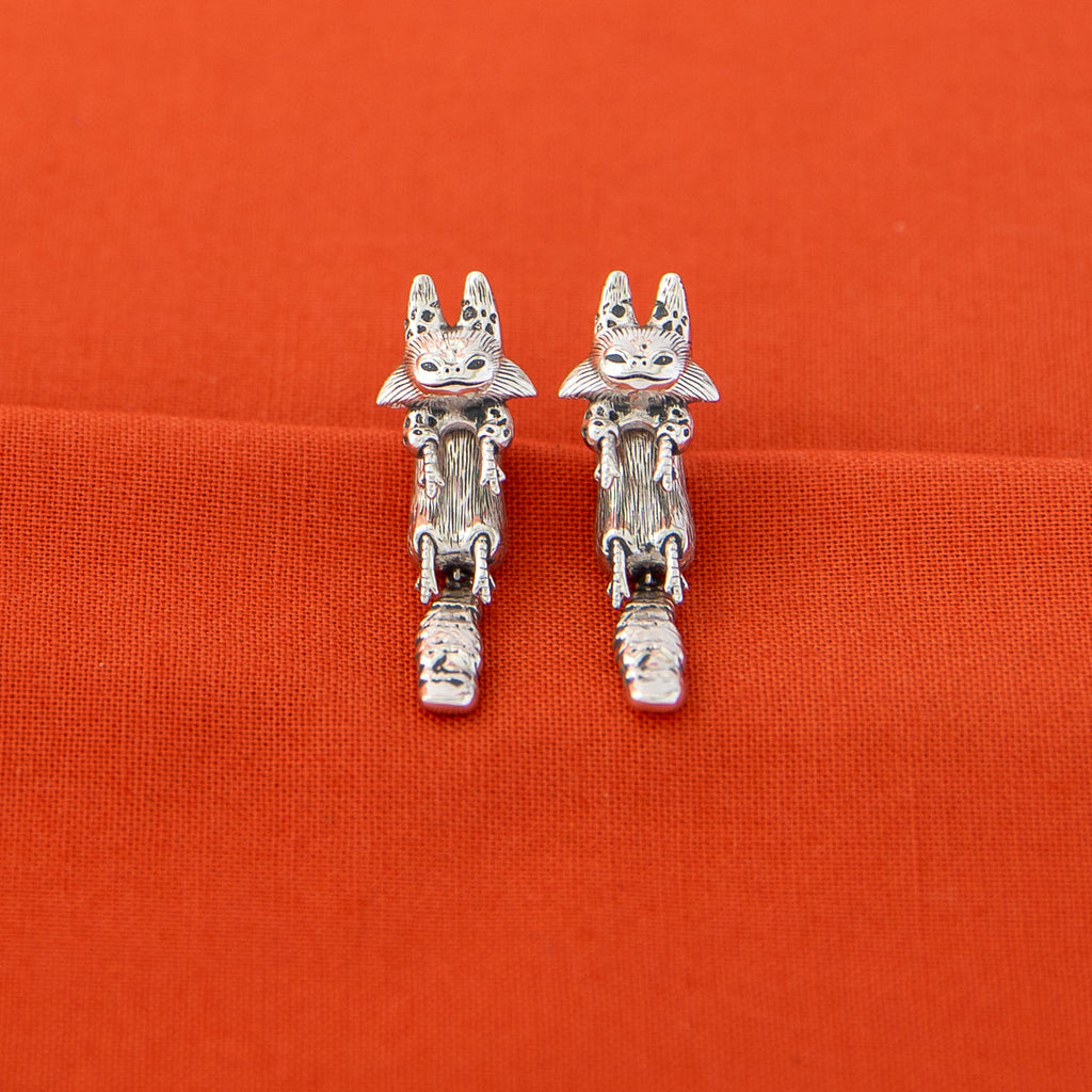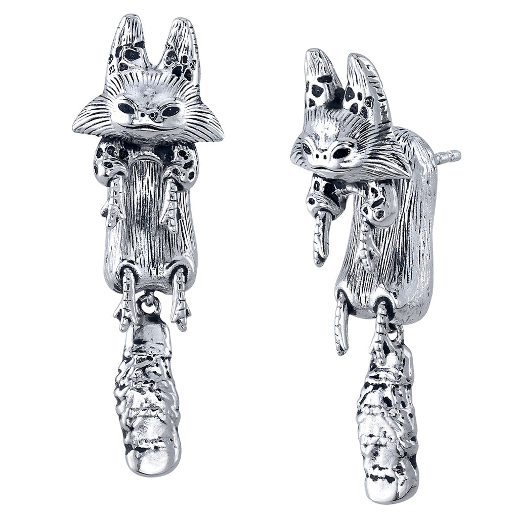LOTH-CATS are small, temperamental creatures often found in the grassy plains of the Outer Rim planet Lothal. Handcrafted in sterling silver and antiqued to emphasize detail, cheerful loth-cat inspired earrings hang through your ear lobe! Adorably three dimensional, the loth-cat’s face and front arms act as the front post piercing, while the body and legs dangle from behind as the earring back. The loth-cat’s tail even wiggles from petite jump rings.