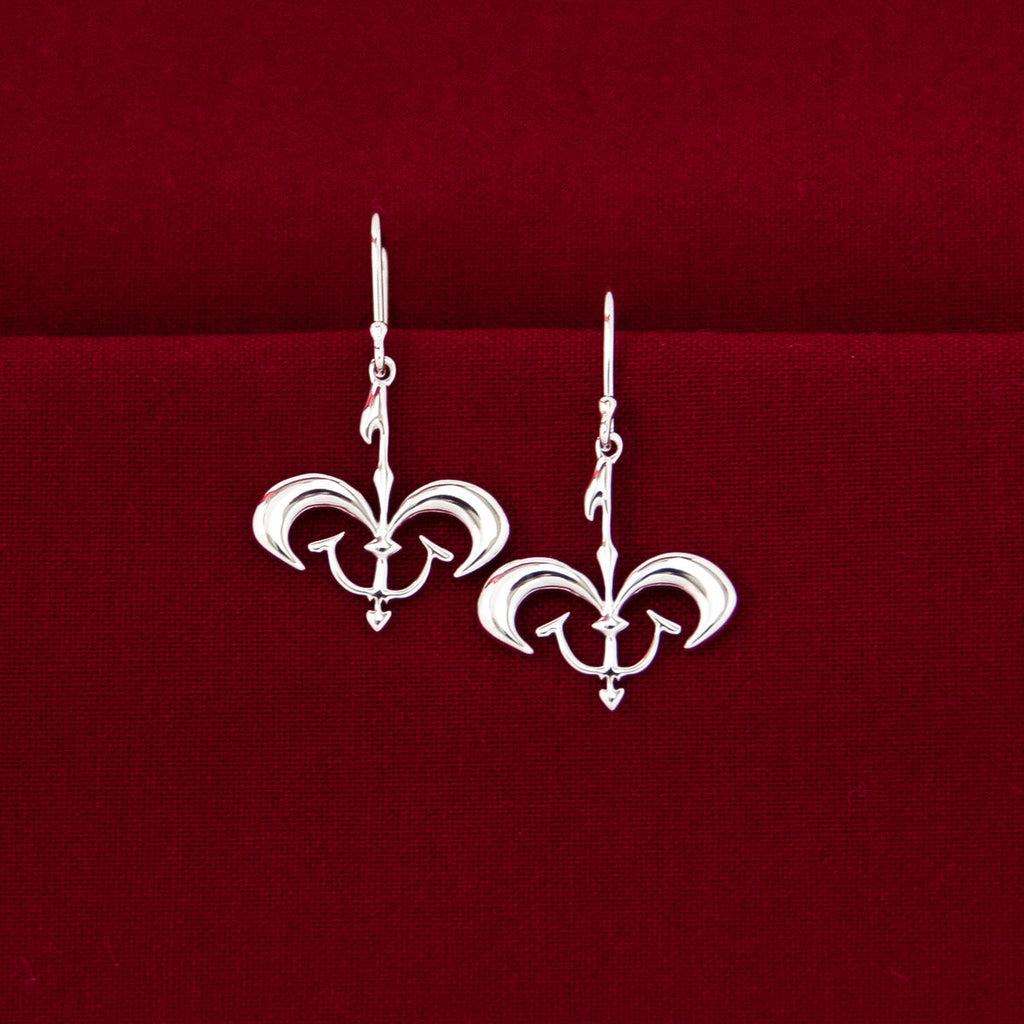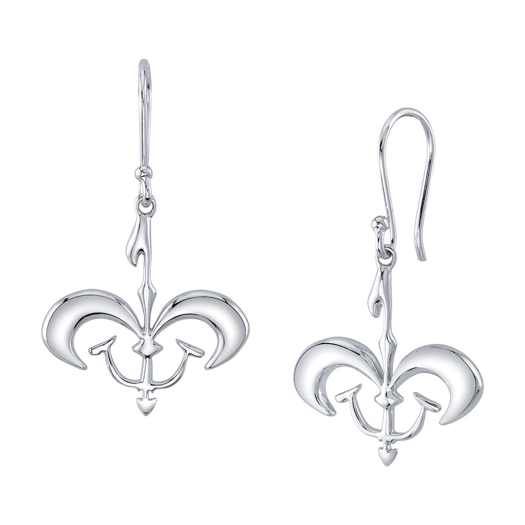 Handcrafted in solid sterling silver, the PADMÉ AMIDALA NABOO Earrings are inspired by the Naboo royal crest, the traditional insignia of the Naboo people. As seen on-screen, QUEEN AMIDALA proudly incorporated the Naboo emblem throughout her and her entourage’s clothing, jewelry, and other accessories. Polished to a bright mirror shine, the sculpted symbols are three-dimensional in a rounded ‘puffy’ silhouette. Smaller than the necklace counterpart for lightweight comfortable wear, these stately earrings dangle from sterling silver French wires.