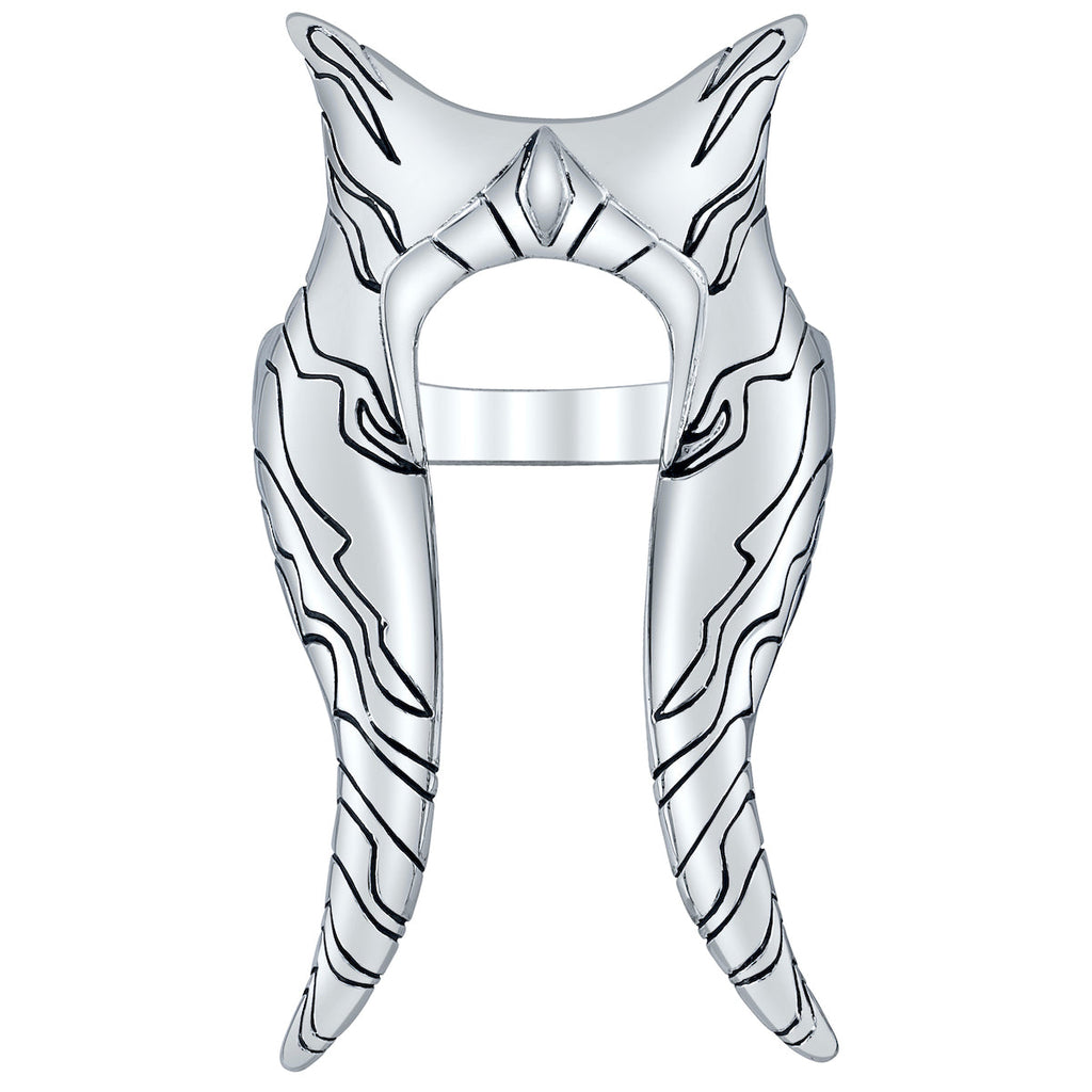 Handcrafted in solid nickel-free sterling silver and antiqued for contrast, the brightly polished REBELS AHSOKA TANO Montral Ring is an homage to legendary warrior, Ahsoka Tano from STAR WARS: REBELS. Featuring her iconic silhouette and distinctive headdress, Ahsoka’s longer, more mature LEKKU frame the finger, reaching down to the knuckle, while remaining comfortable for everyday wear. Ahsoka’s intricate montral pattern is faithfully etched on all surfaces, including the underside of the ring, and continuing across the band.