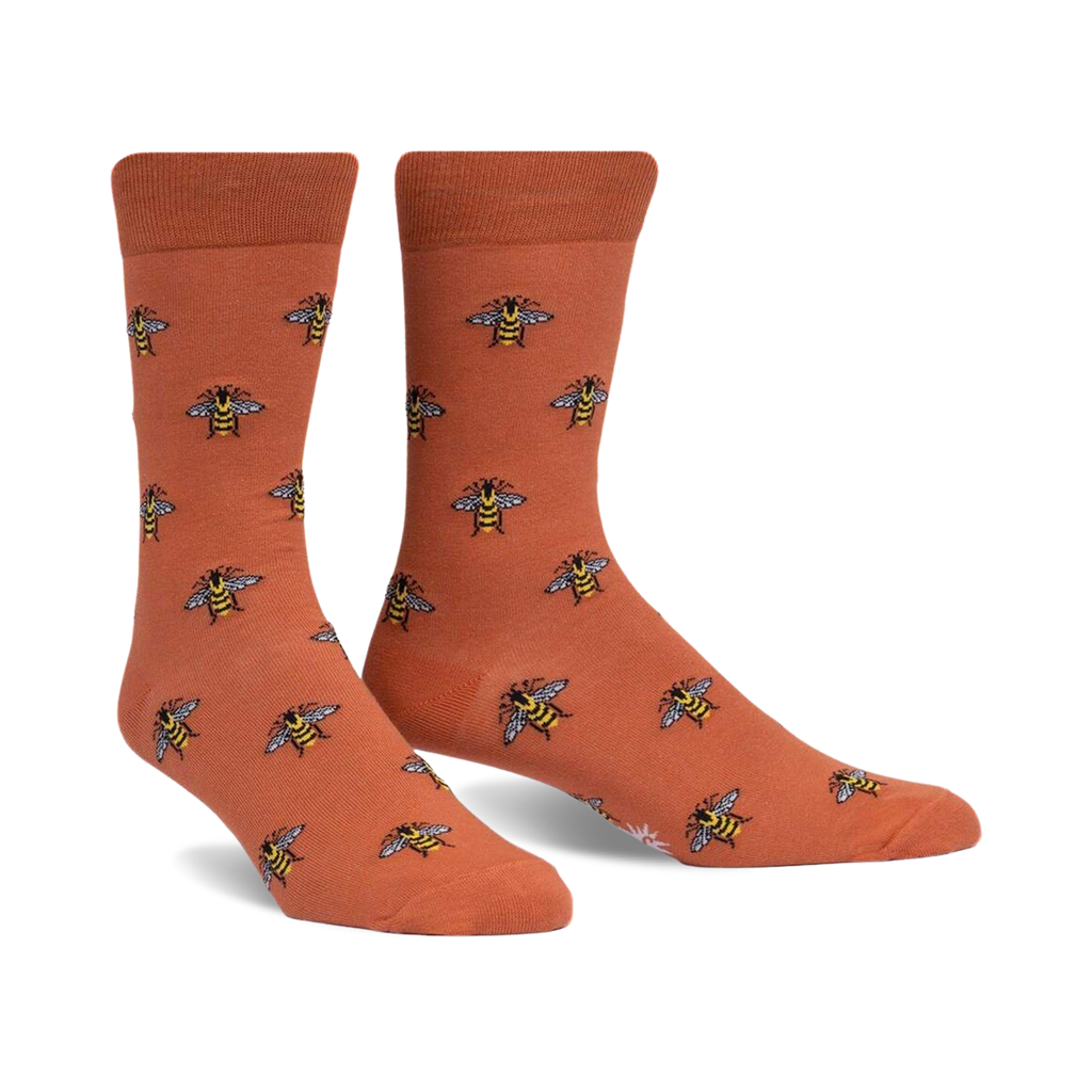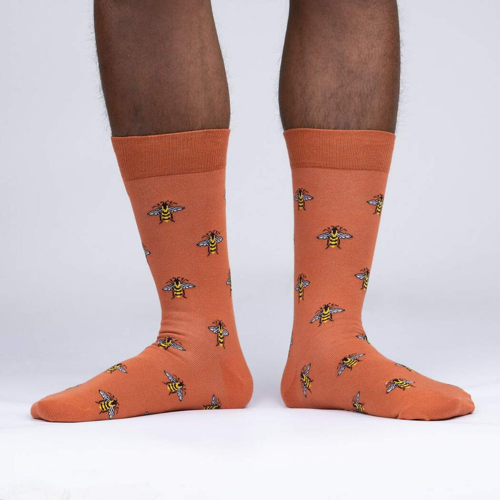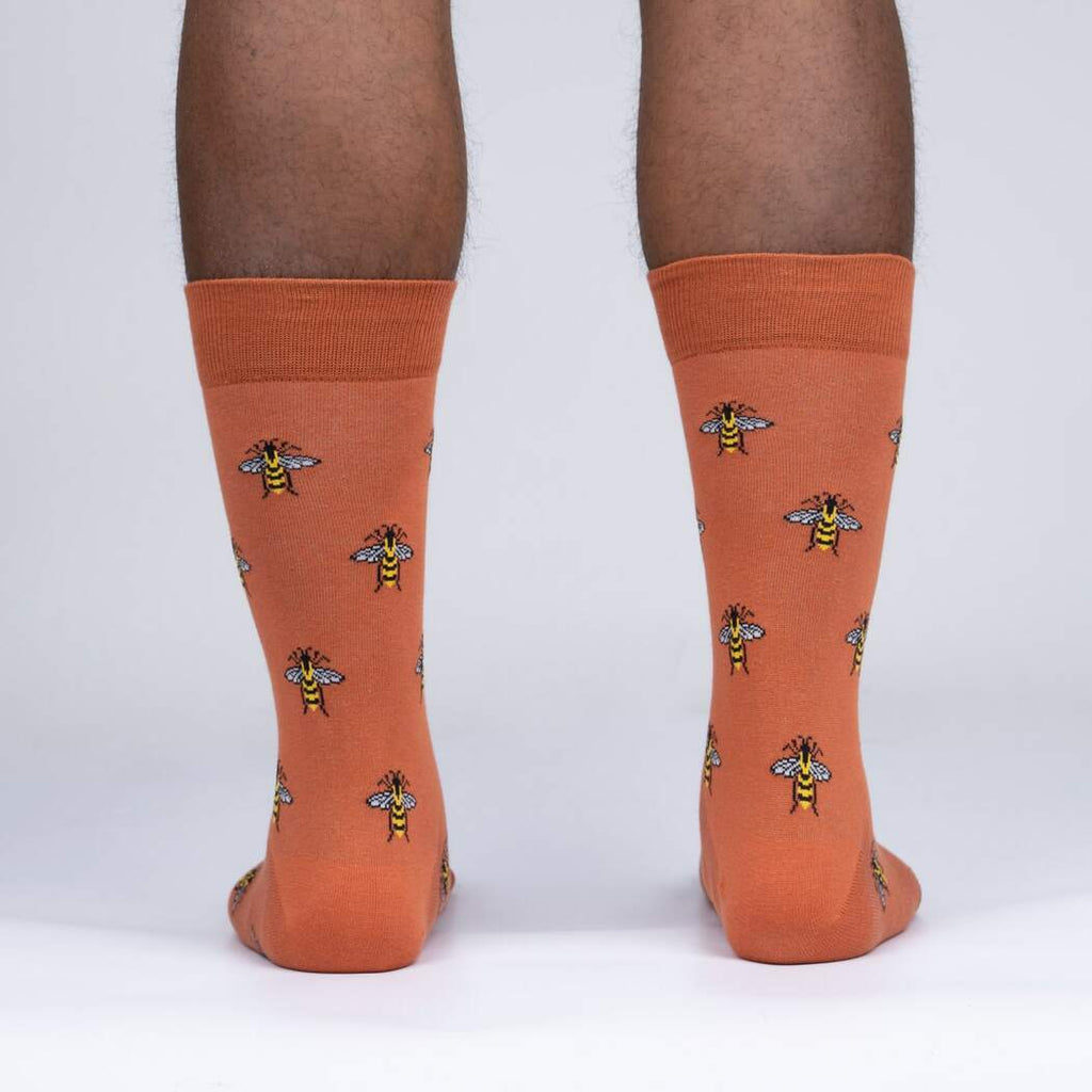 Bee-lieve it or not, Staying Buzzy socks will make a sweet addition to your sock drawer! These crew socks for men buzz around with an energetic orange background and a pattern of brown and yellow honey bees, leaving a trail of adventure and happiness. From buzzing about on busy days to just hanging out in the hive, your feet will feel the comfort and coziness of these cool socks.