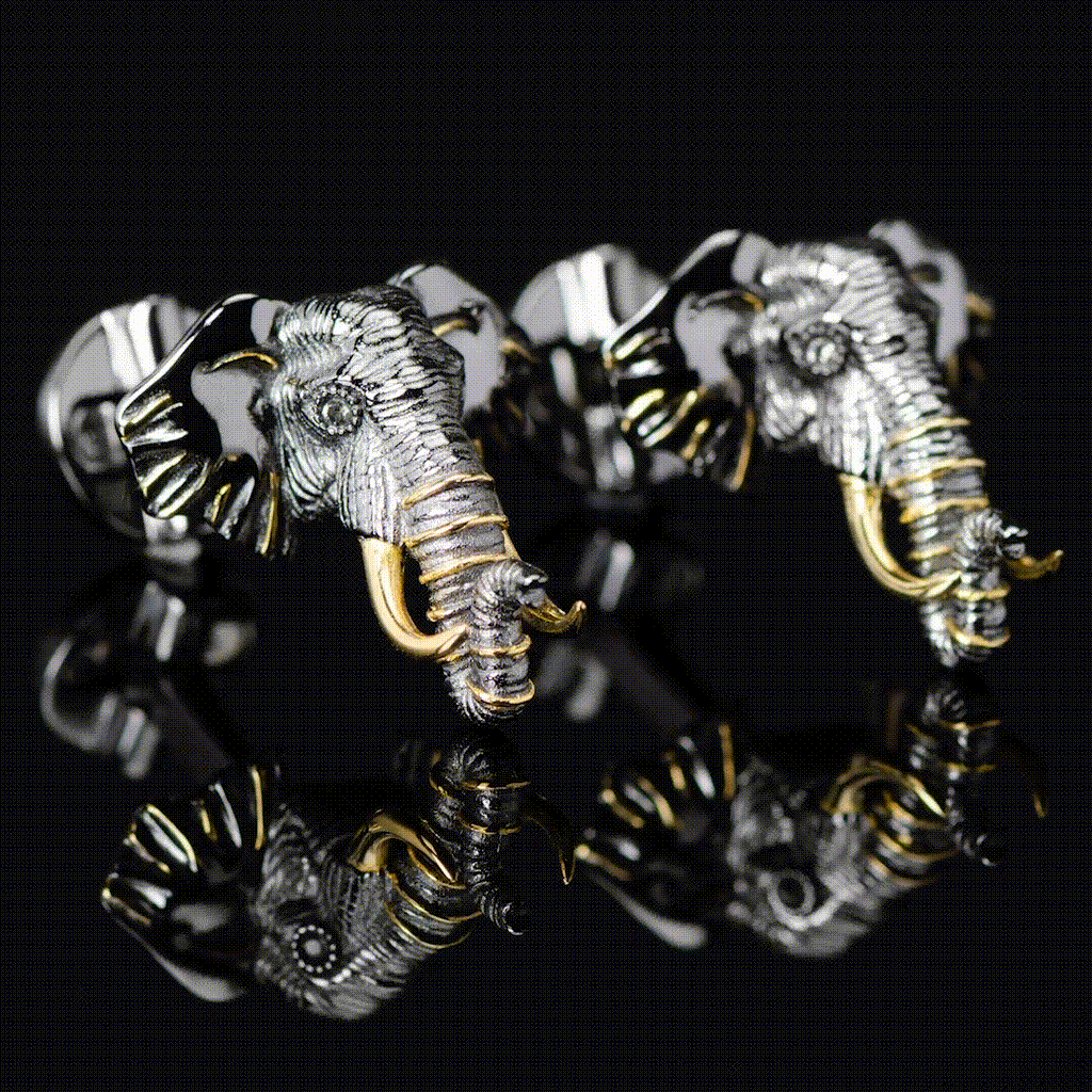 Expertly finished in gunmetal plated sterling silver with gold accents, these stunning and captivating cufflinks are sure to catch the eye. Designed with attention to detail, our Sterling Silver and 14K Gold Elephant Cufflinks resemble a realistic 3D Elephant head. The expert craftsmanship of our Sterling Silver cufflinks ensures long-lasting durability and a classic look that is sure to never go out of style.