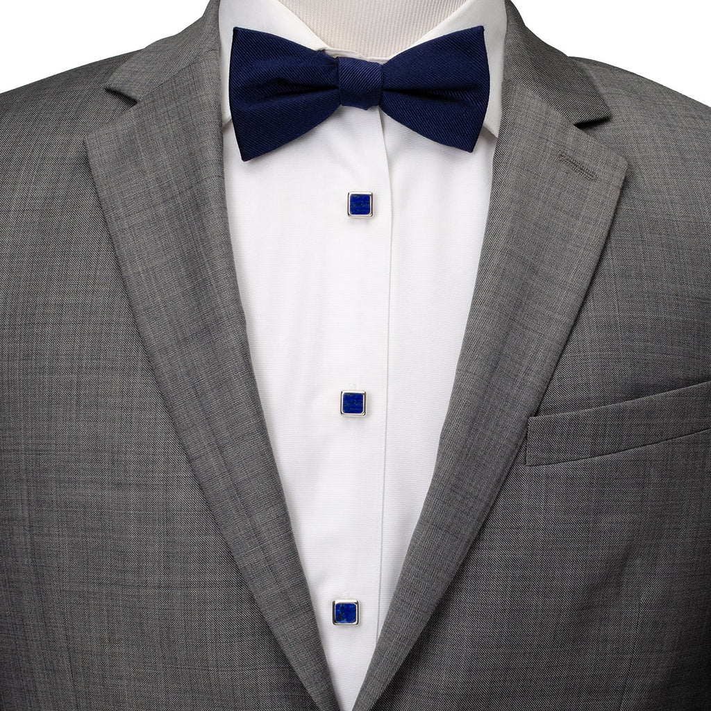 Our silver plated and lapis JFK Presidential cufflinks and stud set is a solid staple for every cufflink collection. Inspired by the 35th President of the United States, silver and lapis command a strikingly sleek and stylish design. Featuring semi-precious stones, no two pairs are exactly alike, which leaves you to ask not what your cufflinks can do for you, but what you can do for your cufflinks. Includes individual gift box.