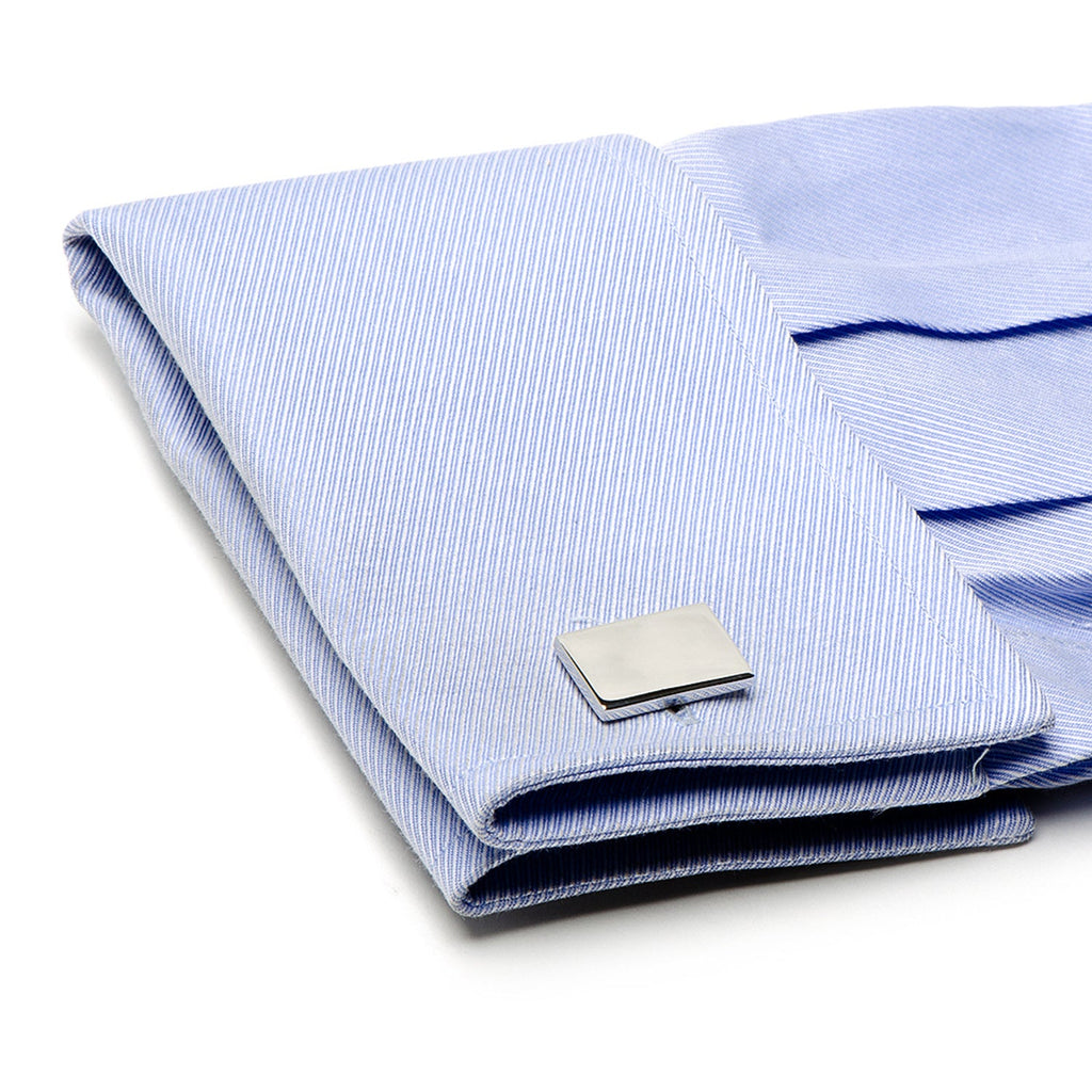 An understated and smooth (just like you) setting for your initials to be prominently displayed on your sleeve. There is no mistaking who these sterling silver rectangle cufflinks belong on: you.