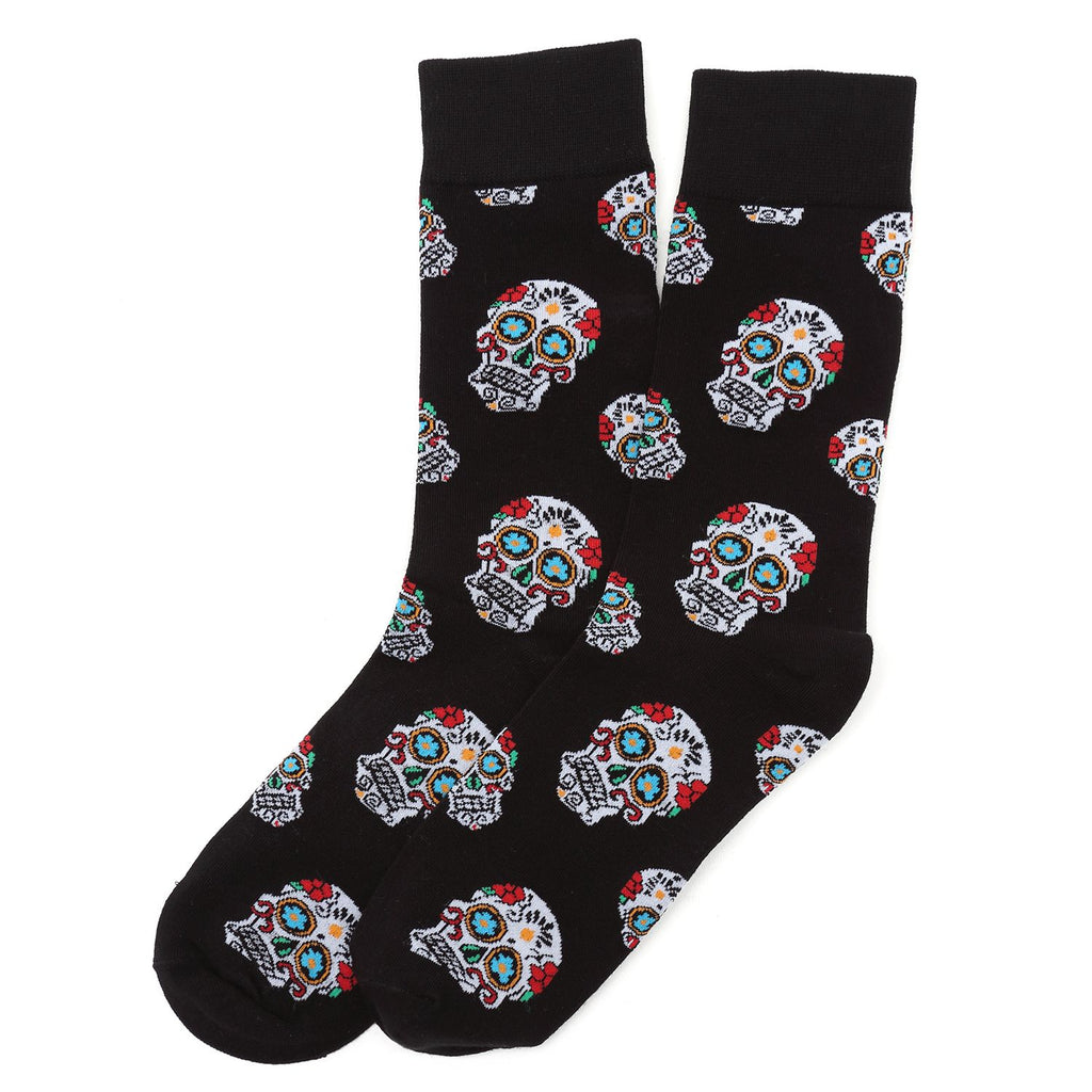 Celebrate The Day of the Dead with our calavera-inspired sugar skull socks. Decorative sugar skulls are sprinkled throughout and set against a pure black background, while a cushiony-soft band across the calf helps keep your black skull socks in place all day. This bold look can be worn alone or with any of our other sugar skull-themed accessories.