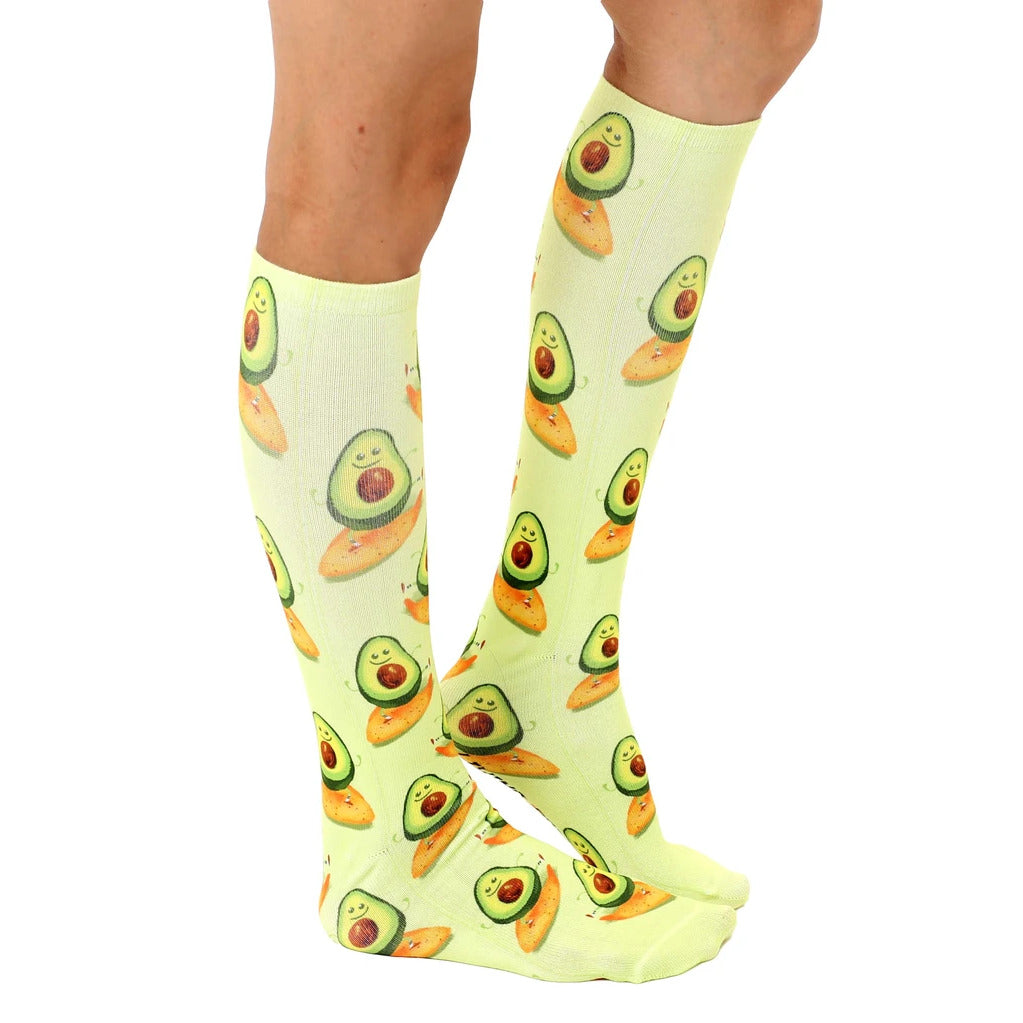 Buckle up avocado lovers! Slip into our knee-high surfing Avocado socks, where smiles abound and dreams of riding the waves come true. Whether you're a surfer dude or a guac enthusiast, these socks promise endless fun and freshness to your feet. Get ready to make a splash and spread the avocado love!