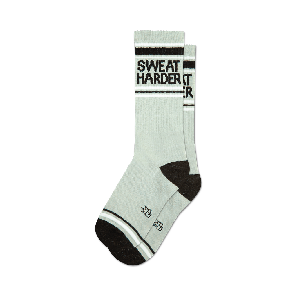 Whether you're hitting the gym or just getting through a marathon meeting, our "Sweat Harder" socks are your perfect companion to remind you of your strength and grit. These gray socks sport a bold mantra that's not just a statement, it's a lifestyle! Ideal for both men and women, they can be flaunted at that spinning class, during a tough mudder or even as a quirky gift for a friend who's all about those gains. Ready to push your boundaries? Lace up, show up, and 'Sweat Harder'!