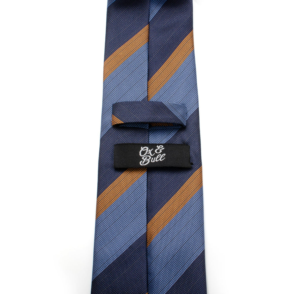Boys night out with a sense of fashion. You'll be the stand out guy with this blue and deep orange striped tie. It pairs well with a solid dress shirt and chinos.