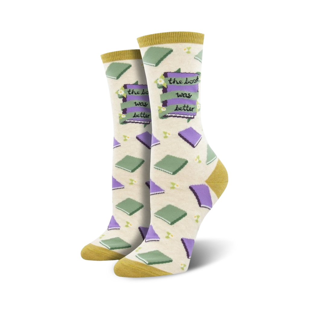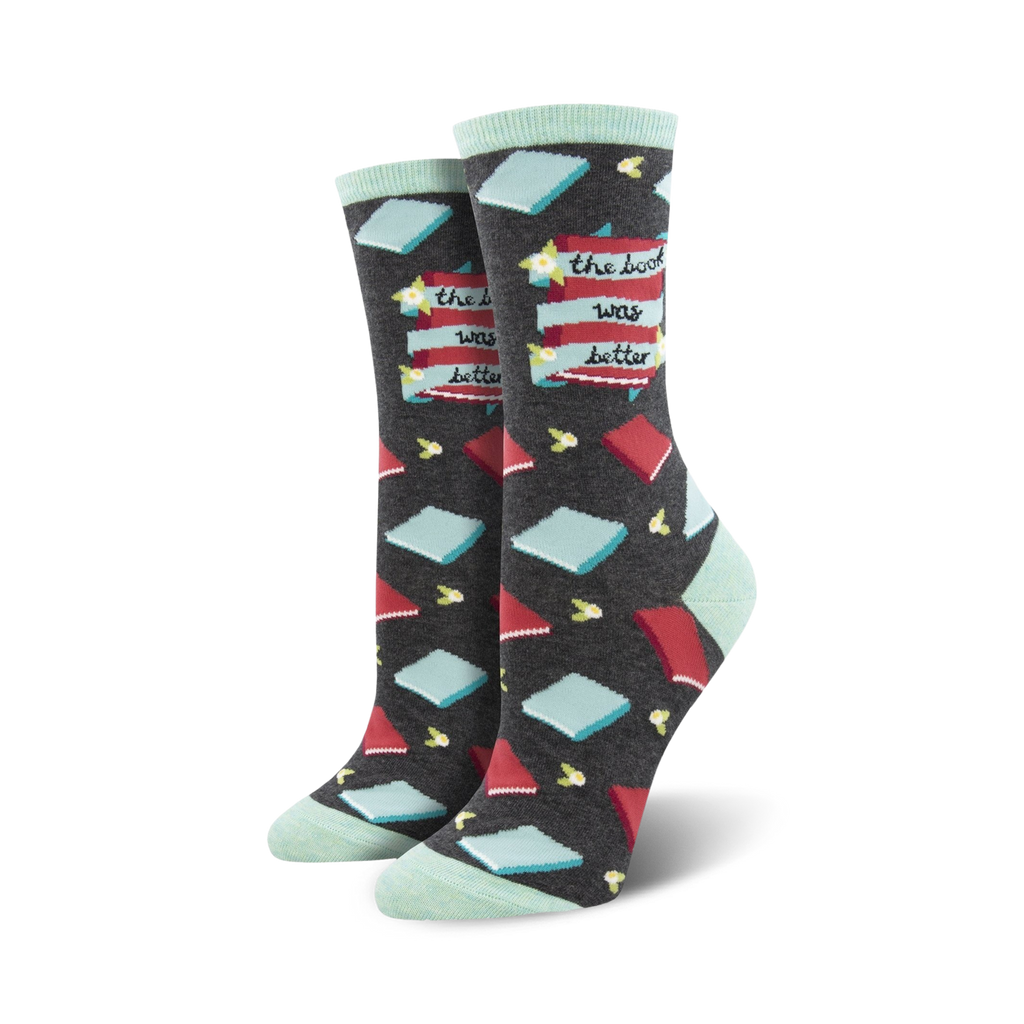 Unleash your inner bookworm with our literary-inspired "The Book Was Better" socks! Journey through a cozy world of books, flowers, and leaves blooming with vibrant colors. Let these socks be your reminder that sometimes, the book truly is better than the movie.