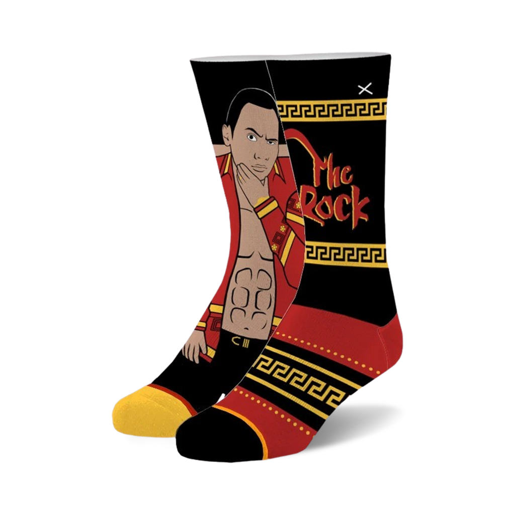 Grab a pair of The Great One socks and show off your love for The Rock in style! Whether you're a devoted fan or just appreciate a good pun, these socks will surely get a chuckle. The black socks feature a bold red and yellow pattern with a cartoon drawing of the iconic wrestler striking a pose. Made for both men and women, these crew length socks are ready to rock any occasion.