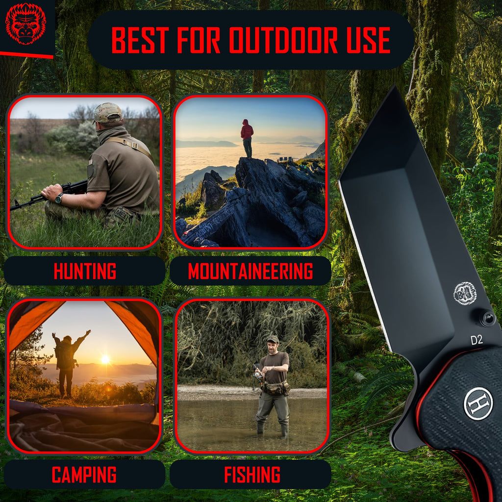 • ✅ MAX CONTROL IN USE DUE TO THE SMART DESIGN HANDLE: The G10 pocket knife handle is enhanced to provide Anti-slip & easy grip, it is designed for functionality.