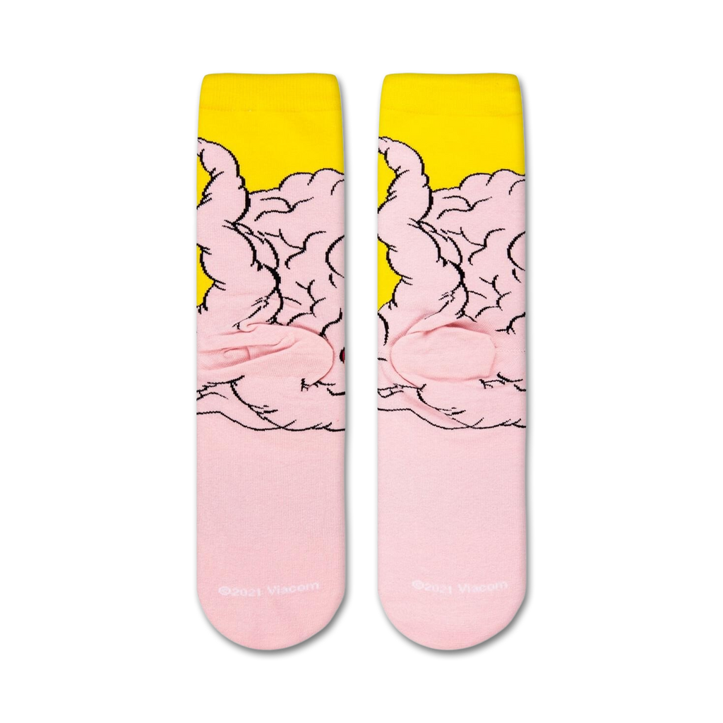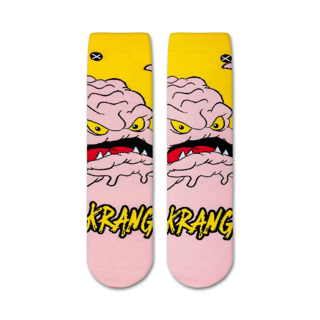 Krang, the cartoonish, captivating character from TMNT, comes to life in these vibrant pink and yellow novelty socks! This brain-like figure with sharp teeth, black eyes, and his infamous yellow helmet, brings a playful pop of the Teenage Mutant Ninja Turtles universe to your feet. Perfect for both men and women, these crew-length socks are a fun conversation starter and a reminder of the resilience and power of even the smallest creatures.