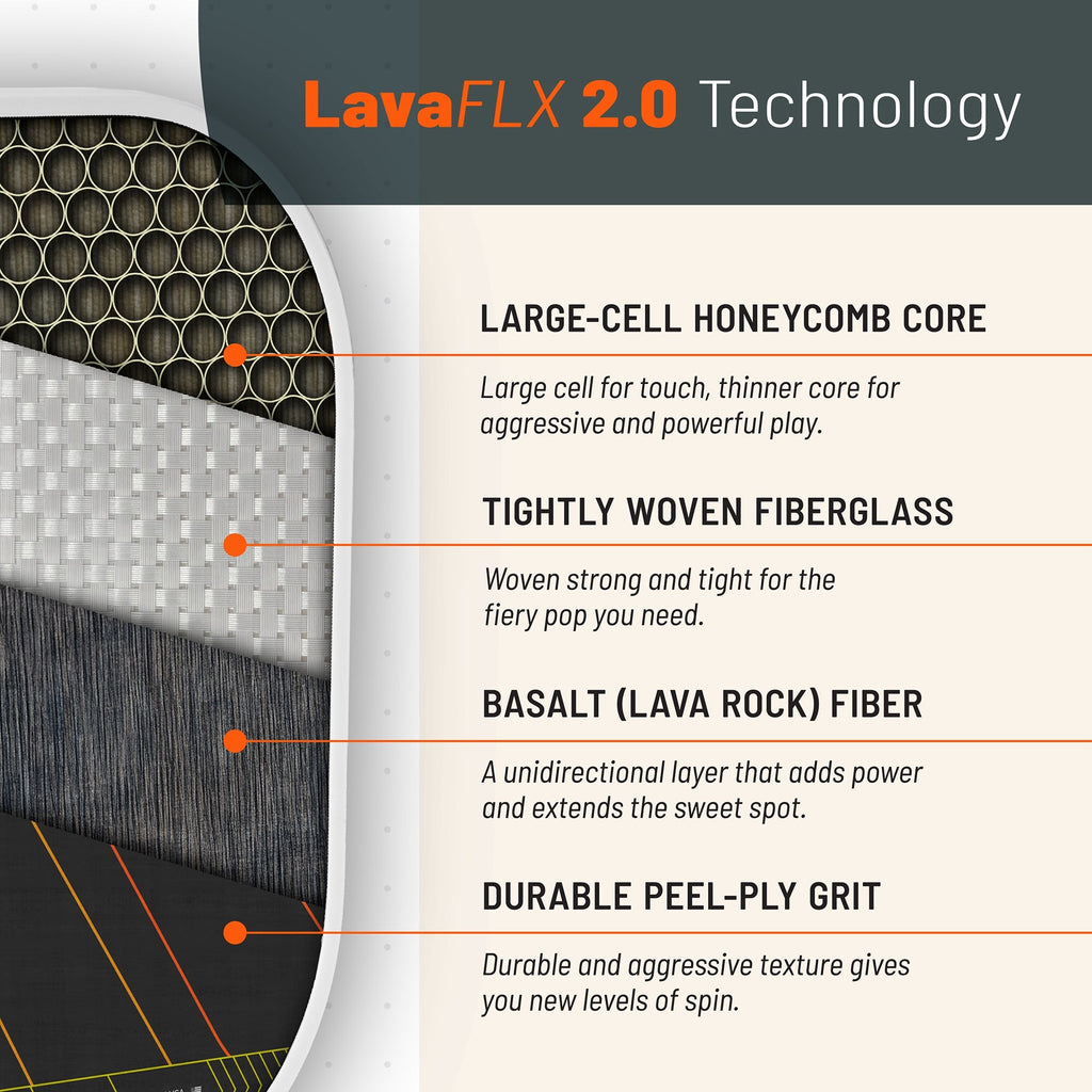 A large-cell polymer honeycomb core helps balance out the unruly play found in most ultrapowerful paddles, adding dwell time to give you more control over the direction of your shot. Our engineered shape was intentionally designed to help increase spin and add plushness.