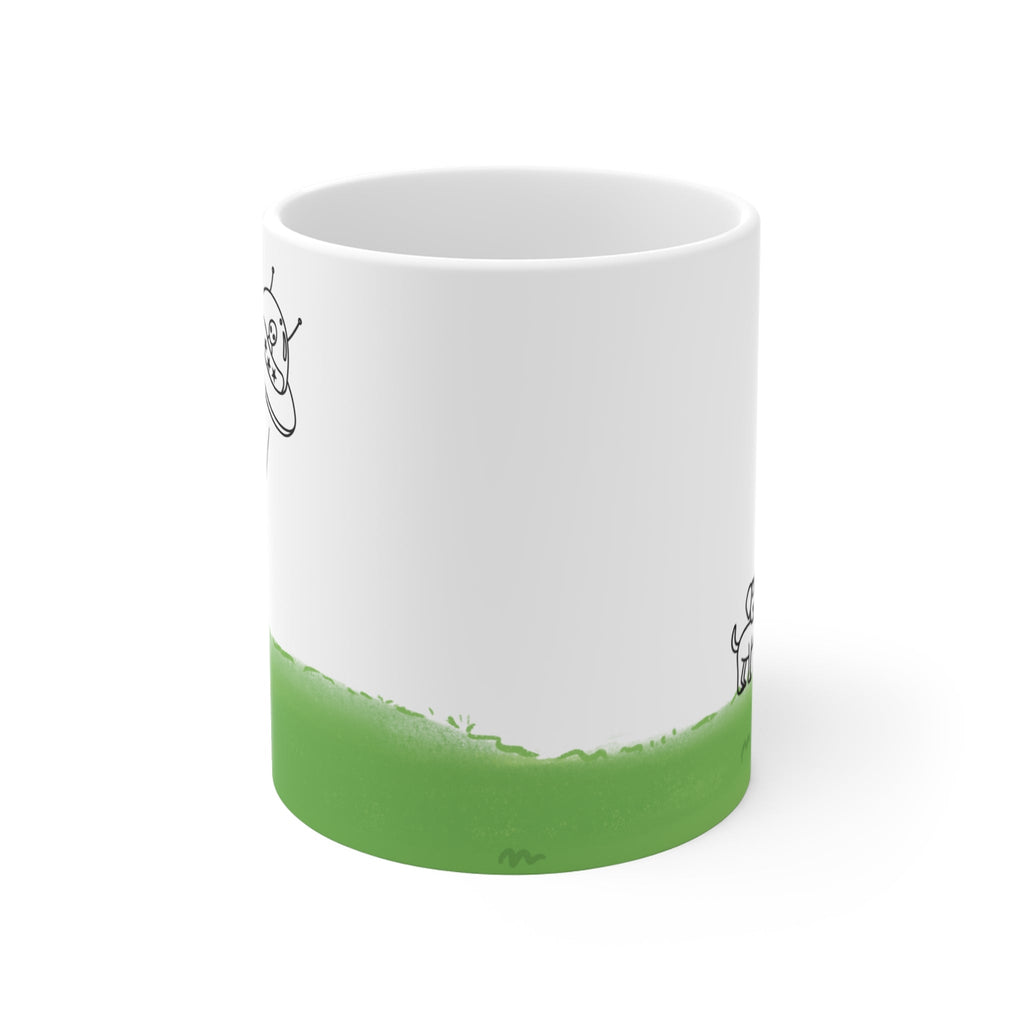 A whimsical mug featuring a playful alien abducting a cute dog in a flying saucer. Perfect for coffee, tea, or any other hot beverage. A fun and quirky gift for dog lovers and sci-fi enthusiasts.