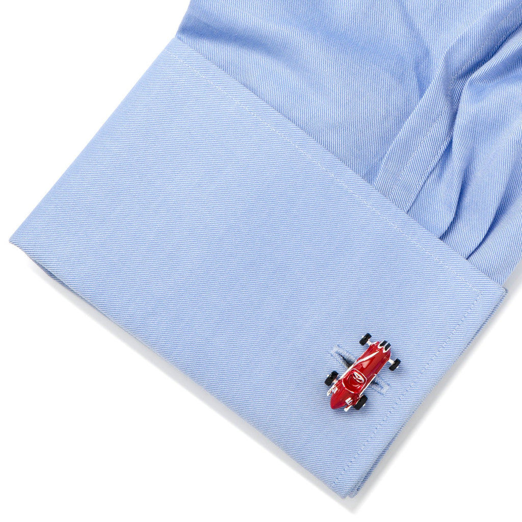 These red vintage race car cufflinks are the perfect accessory for those who appreciate fast cars and fashion; the 3D enameled design is sure to turn heads. At the track or in the boardroom, these silver tone plated metal cufflinks detailed with red and black enamel will add some vroom to the suited-up look of any car enthusiast.