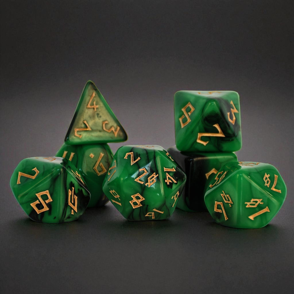 Our acrylic dice are carefully poured into individual molds and cured inside a vacuum chamber to ensure no air bubbles are trapped inside the dice. After curing, each individual die is removed from the mold and the numbers are painted by hand. These dice are perfect for any RPG and will be sure to impress at your upcoming session!