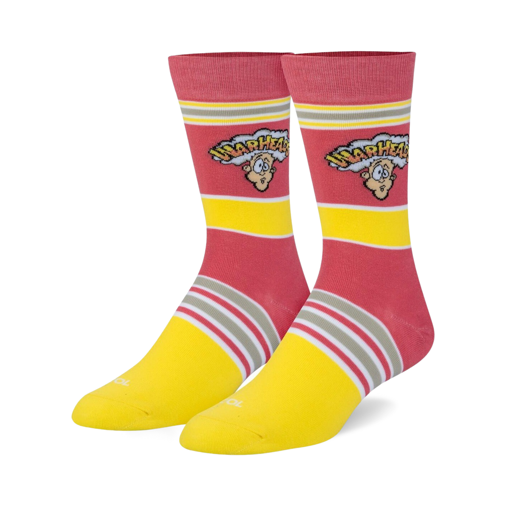 Warheads lovers, pucker up! Our Warheads socks will have you walking on sunshine and sour clouds - literally. Donning a pink and yellow color scheme with the iconic sour cartoon character and logo, these socks are just the kick your feet need to stand out from the crowd. Show off your love for the classic candy while keeping your toes cozy and stylish. Put on a pair of Warheads socks, and let the good times roll!