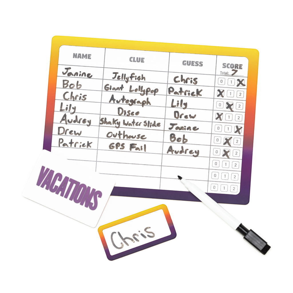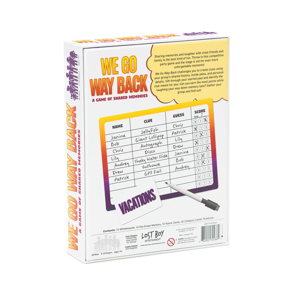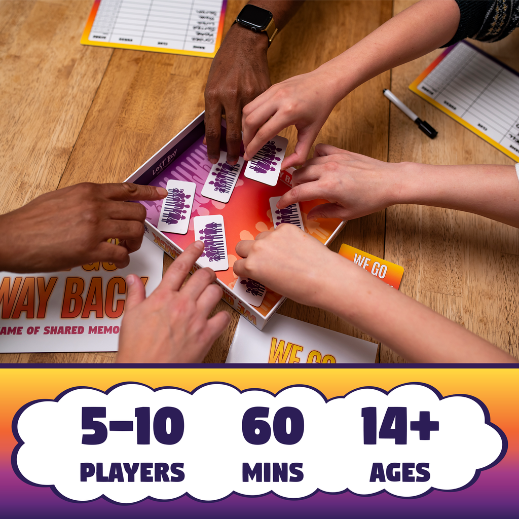 We Go Way Back challenges you to create clues using your group’s shared history, inside jokes, and personal details. Sift through your storied past and identify the clue meant for you. Can you earn the most points while laughing your way down memory lane? Gather your group and find out!