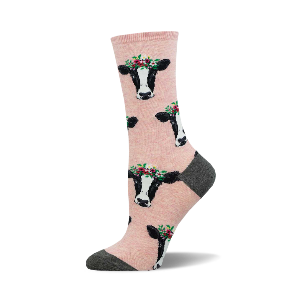 Imagine herding your feet into the delightful whimsy of Wow Cow socks! These crew-length charmers feature adorably quirky cows crowned with flower garlands in a serene shade of light blue. Perfect for breezy spring days or adding a splash of fun to any casual outing - picnics, park strolls, or just lounging at home. Who said you can't bring the barnyard fun to your footwear? Grab a pair, flaunt those calves, and milk every moment of joy from your socks!