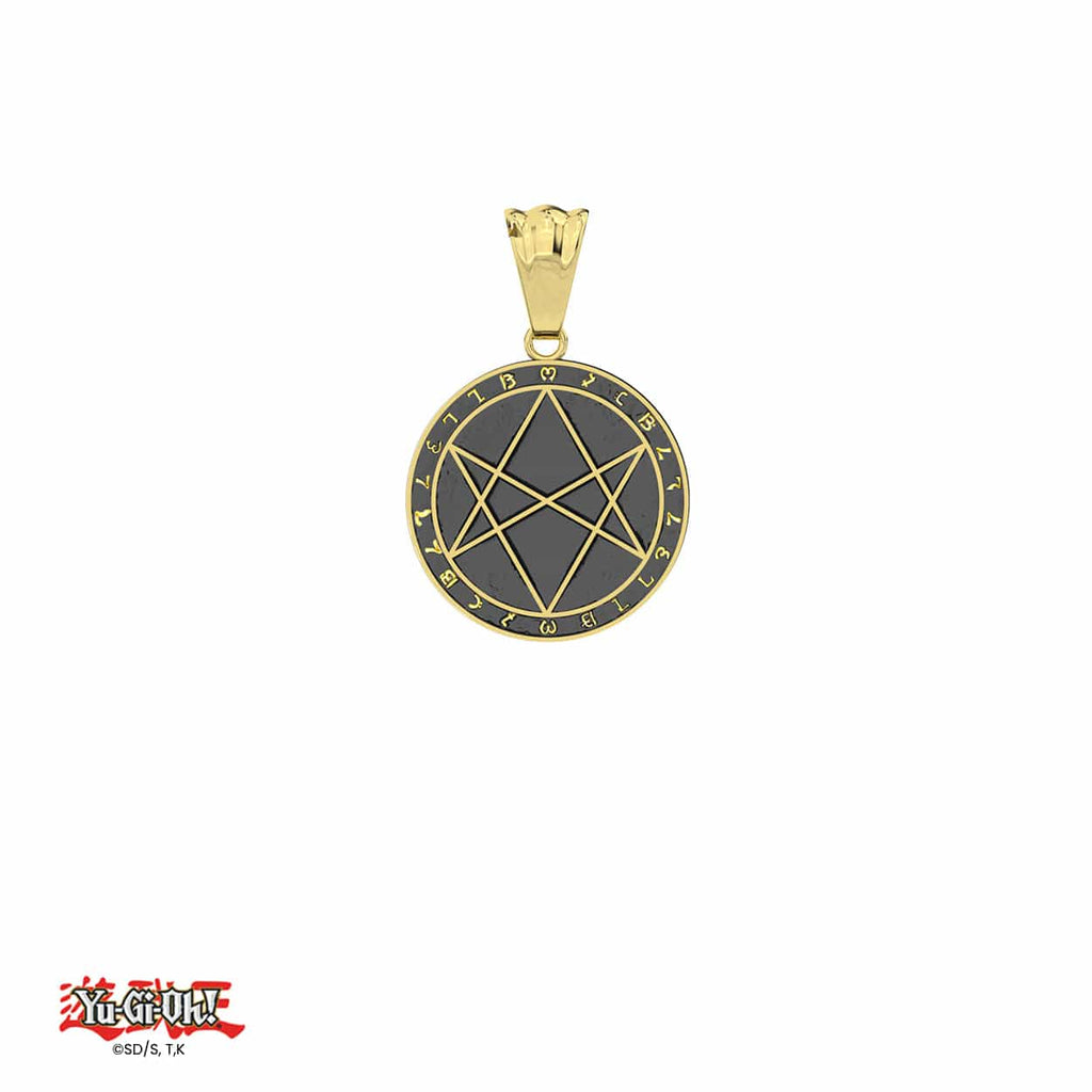 The Seal of Orichalcos Pendant features a 3D design and stands 26mm tall & 3mm at its thickest & 23mm at its widest.