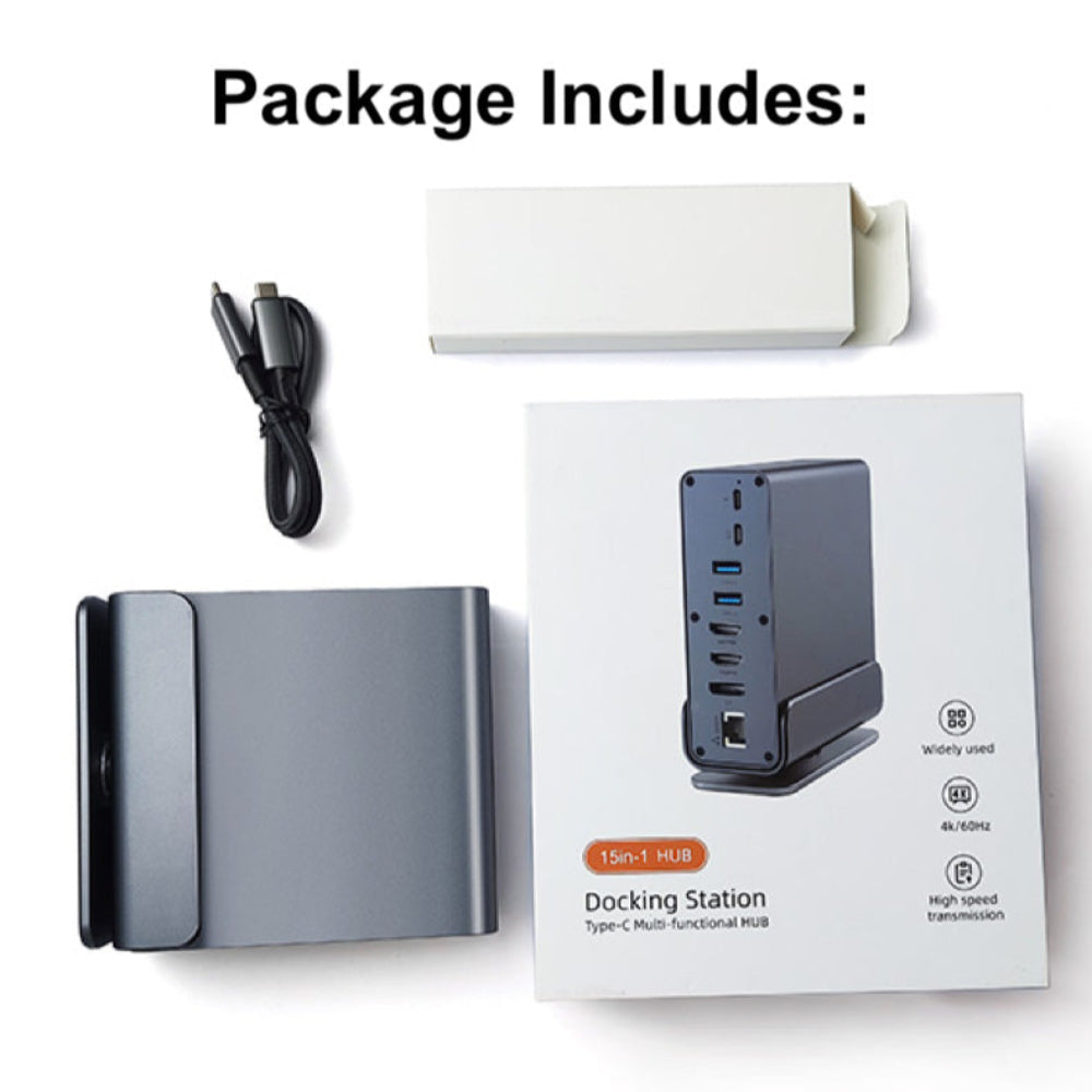 The 15-in-1 Type C Docking Stand Station Hub is your ultimate solution for connectivity and productivity. With multi-monitor support, 4K visuals, and high-speed transfers, it empowers you to work smarter and create effortlessly.