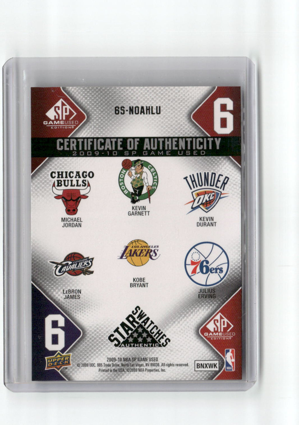 2009 NBA SP Game Used Star Swatches Jordan LeBron Kobe Durant Erving Garnett /65 Game Used Jersey Relic Basketball Card