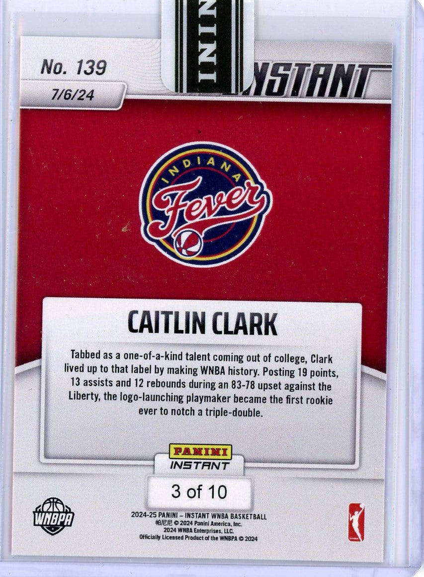 2024 Panini Instant Caitlin Clark #139 First Rookie Triple Double Jaguar #/10 Rookie RC Basketball Card
