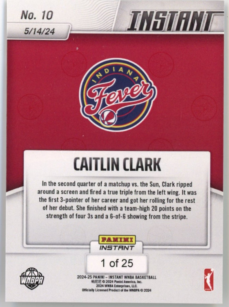 2024 Panini Instant WNBA Caitlin Clark #10 Jungle #/25 Rookie RC Basketball Card