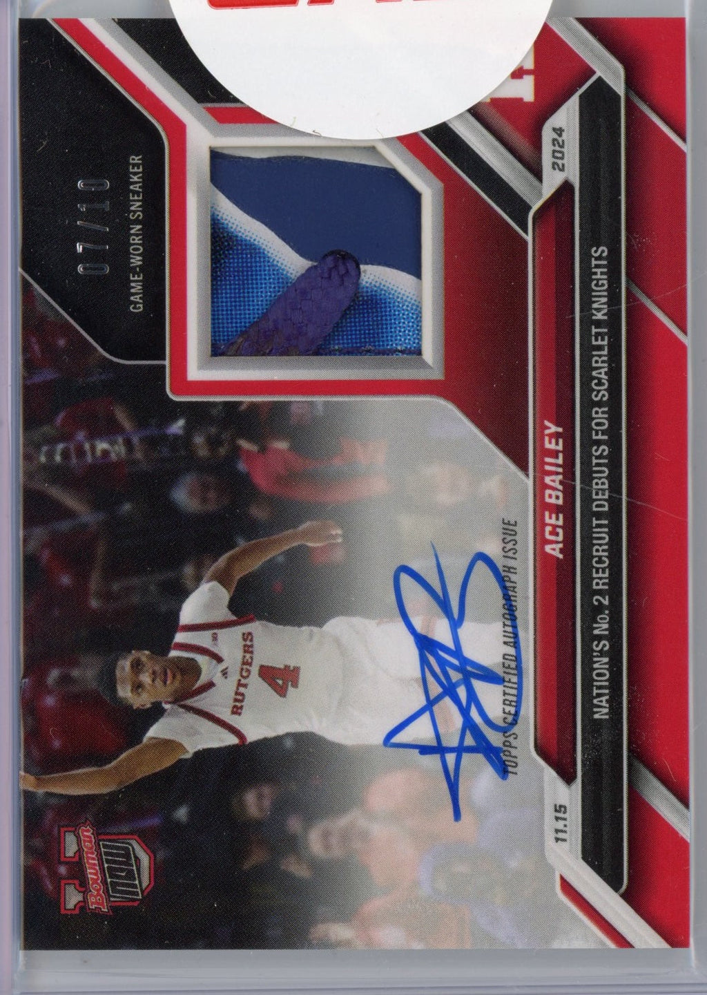 2024 Topps Bowman U Now Ace Bailey #12B Game Worn Sneaker Auto Relic Red /10 Rookie RC Basketball Card