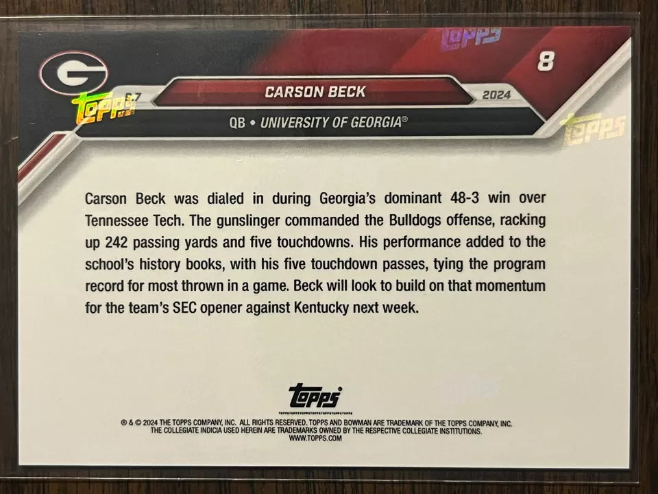 2024 Topps Bowman U Now Carson Beck #8 Blue #/49 Georgia Bulldogs Football Card