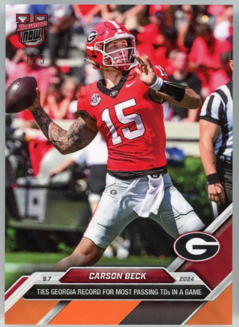 2024 Topps Bowman U Now Carson Beck #8 Orange #/5 Georgia Bulldogs Football Card