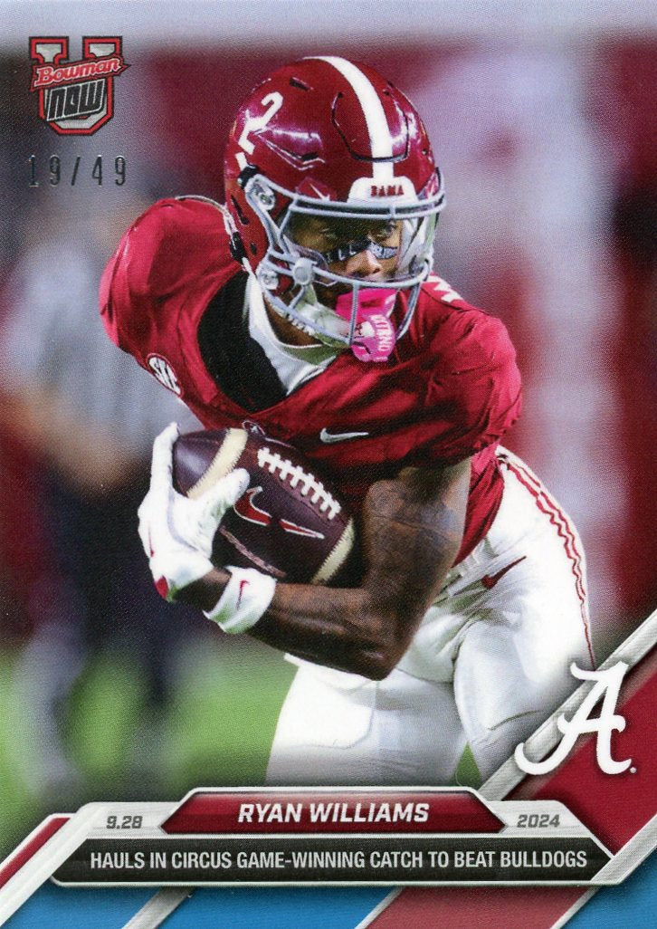 2024 Topps Bowman U Now Ryan Williams #19 Blue #/49 Alabama Crimson Tide Rookie RC Football Card