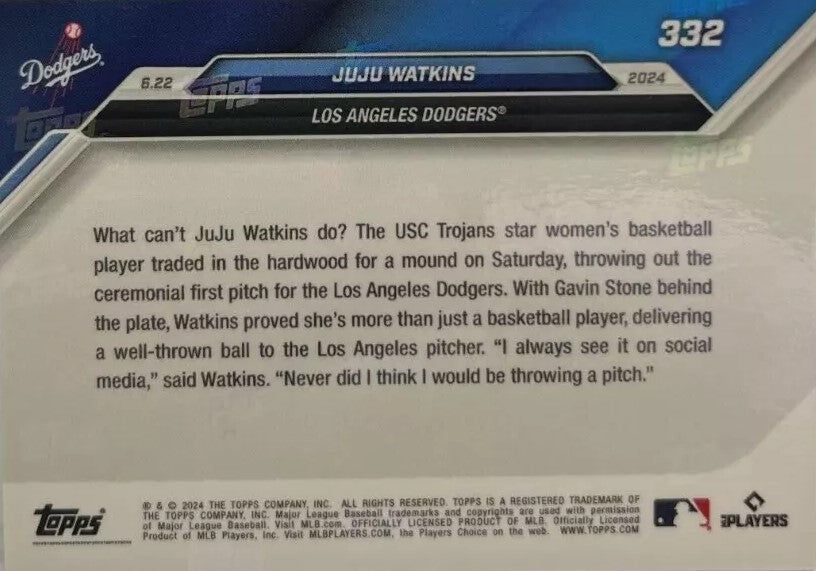 2024 Topps Now JuJu Watkins #332 Blue #/49 Rookie RC Basketball Card