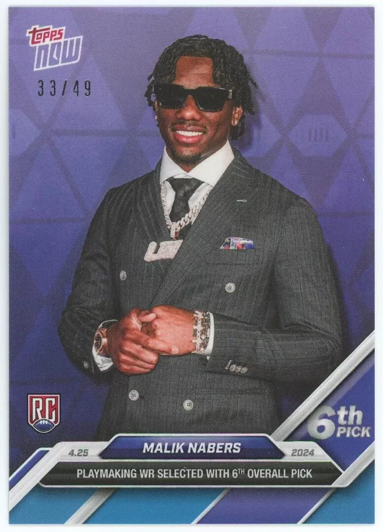 2024 Topps Now Malik Nabers #D4 Blue #/49 Rookie RC Football Card