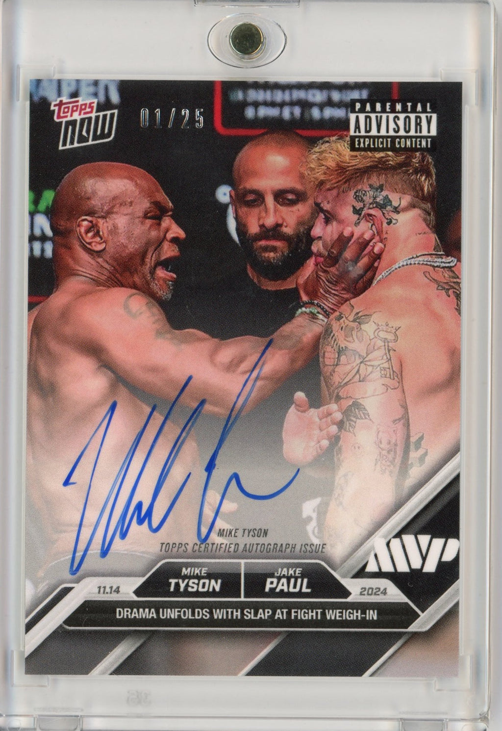 2024 Topps Now Mike Tyson/Jake Paul #3 Auto #/25 Slap At Weigh In Boxing Card