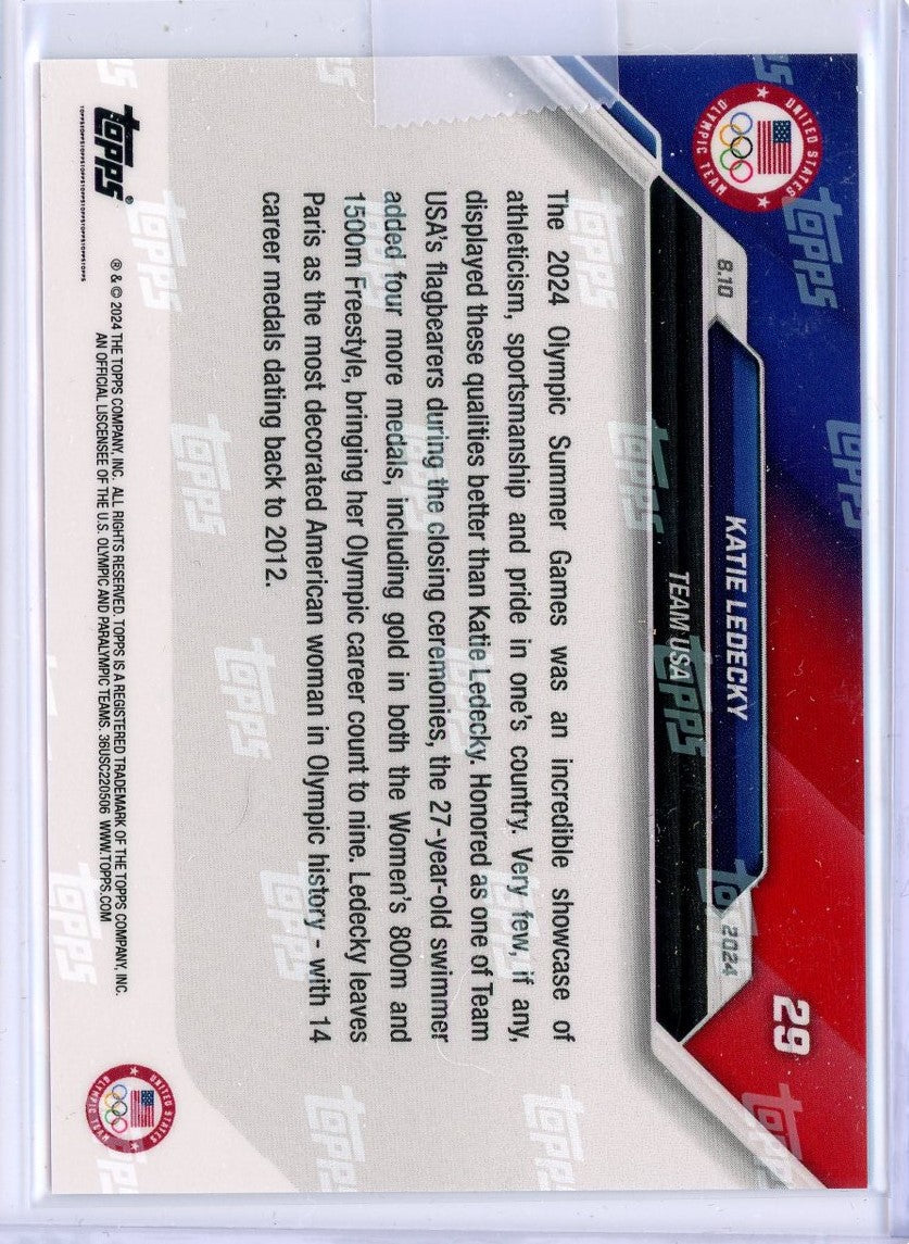 2024 Topps Now Paris Olympics Katie Ledecky #29 Blue Foil #/49 Swimming Card