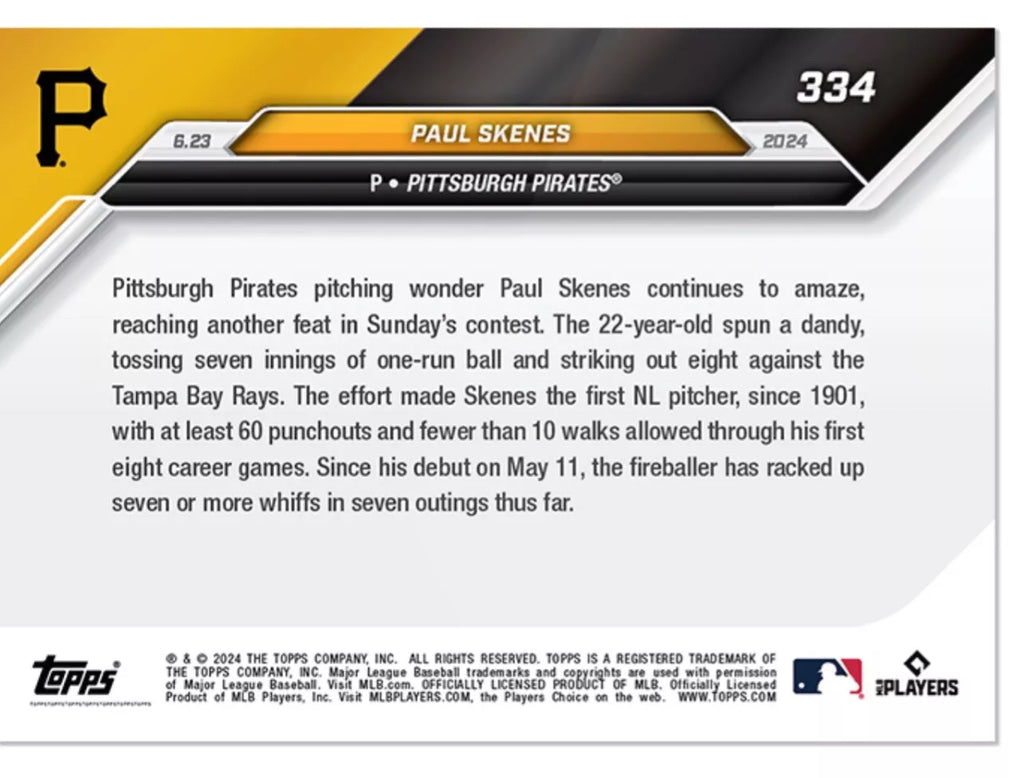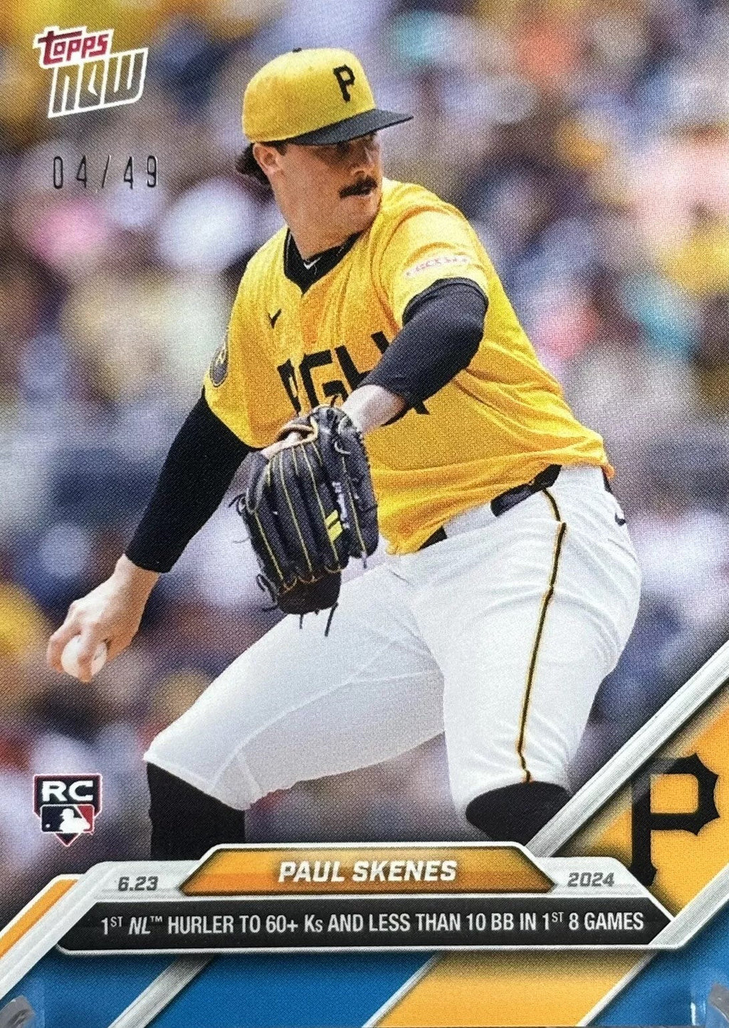 2024 Topps Now Paul Skenes #334 Blue #/49 Rookie RC Baseball Card
