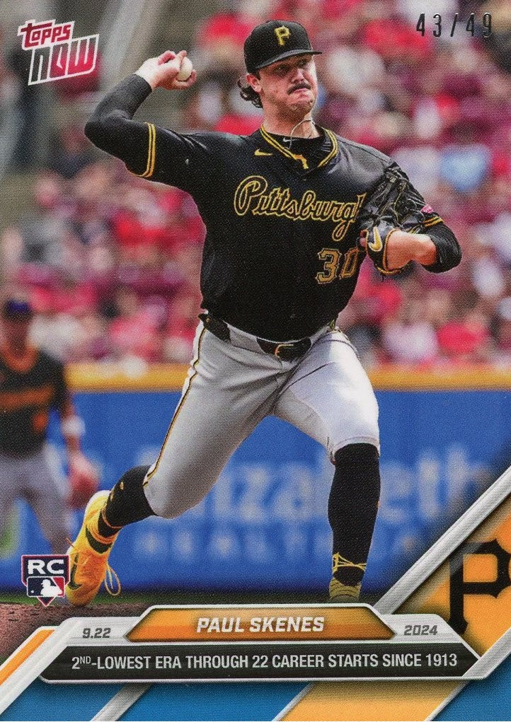2024 Topps Now Paul Skenes #739 Blue #/49 Pittsburgh Pirates Rookie RC Baseball Card