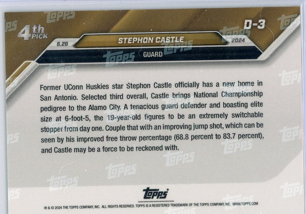 2024 Topps Now Stephon Castle #D3 Blue #/49 Rookie RC Basketball Card